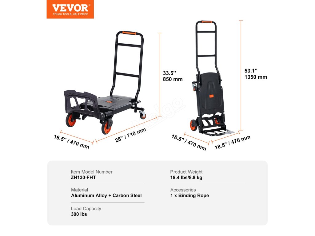 | Velikost ručního vozíku | 18.5 "D x 18,5 "Š x 53,1 "V/470 x 470 x 1350 mm |