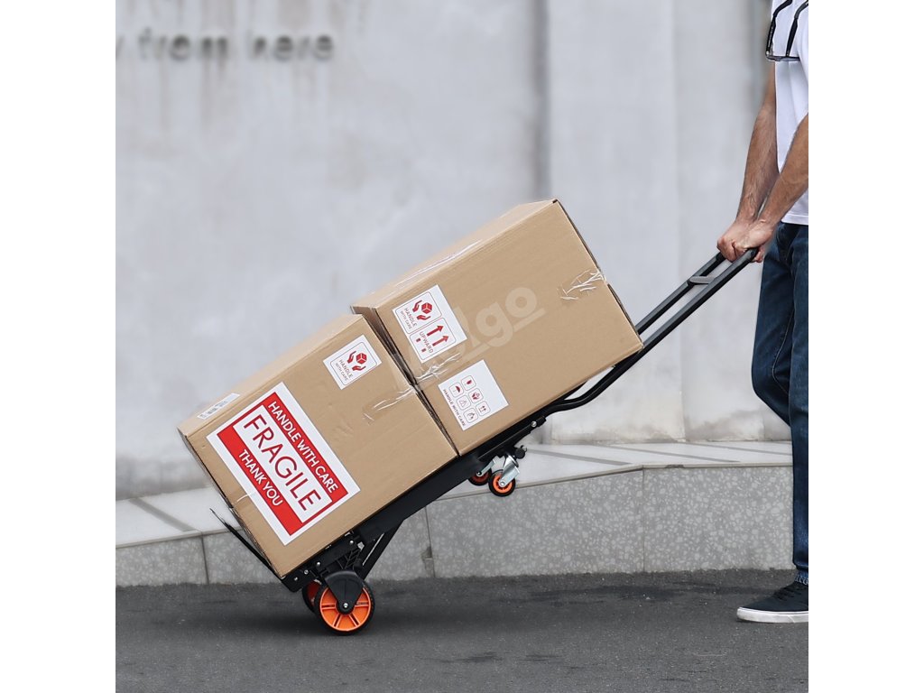 Položte jej na rovný povrch nebo jej postavte vzpřímeně - jak se vám dnes ruční vozík líbí? Ergonomicky navržený pro pohodlí a užitek, je dokonce vybaven protiskluzovou rukojetí. Nyní si můžete sami zvolit své stěhovací dobrodružství!