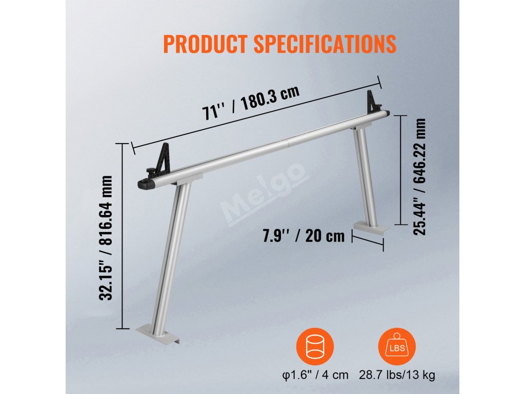 Nosič na nákladné vozidlo VEVOR na prepravu kajakov a rebríkov. Je to najlepšia možnosť na prepravu kajakov a rebríkov. Dokáže zvládnuť ťažký náklad až do hmotnosti 800 kg. Vďaka tomu je spoľahlivou voľbou pre prácu aj voľný čas. Konštrukcia nosiča zaručuje stabilitu a bezpečnosť počas prepravy. Ľahko sa inštaluje a demontuje a je vhodný pre rôzne modely nákladných vozidiel. Nastaviteľná výška umožňuje prevážať rôzne veľkosti nákladu. Tento nosič môžete použiť na akúkoľvek úlohu, ktorá si vyžaduje dodatočnú prepravnú kapacitu. Vďaka pevnej konštrukcii môžete tento nosič použiť na prepravu zariadenia na dlhú dobu používania. Či už na víkendové dobrodružstvo alebo na pracovné úlohy, tento nosič splní vaše potreby.