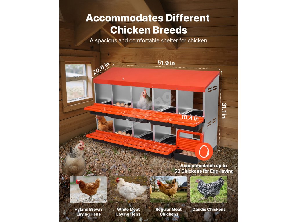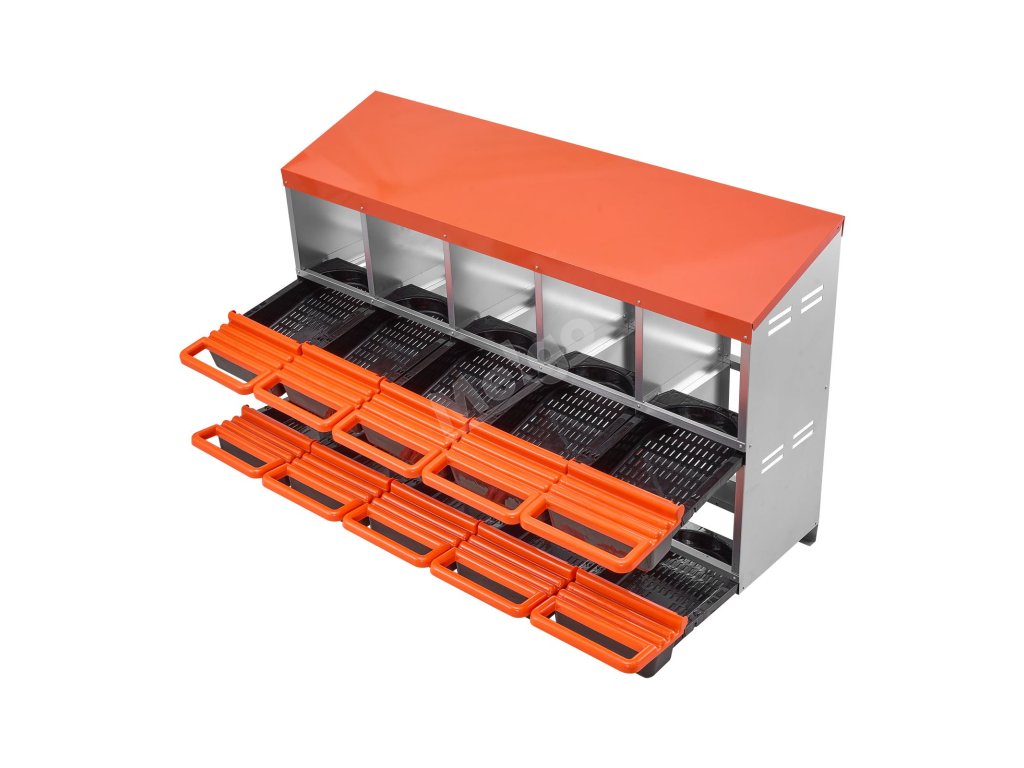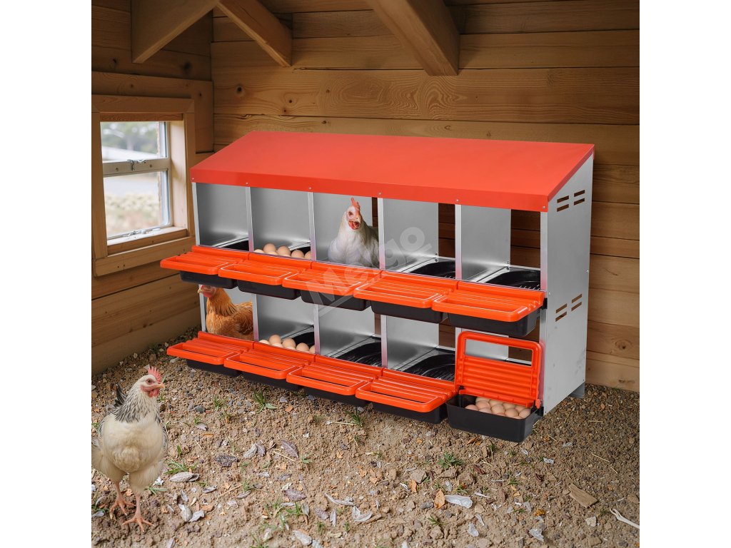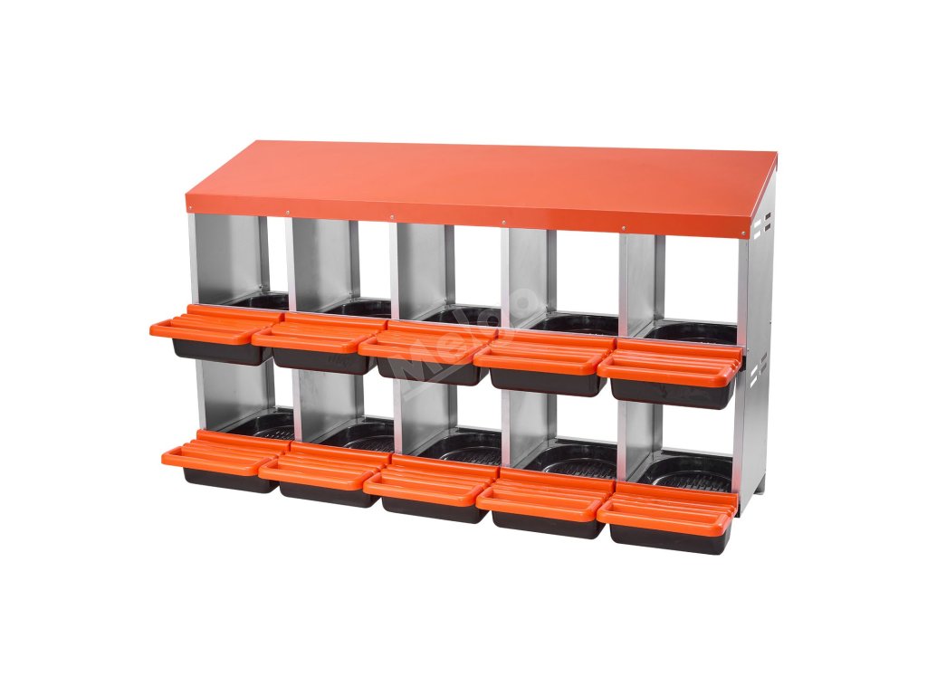 Hnízdový box pro slepice 10 přihrádek, kovový, 30–45 in, se sklonem