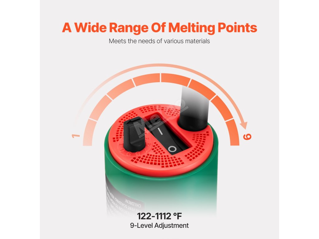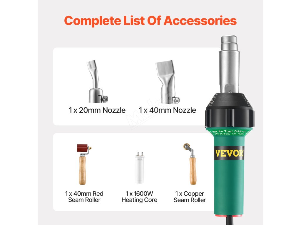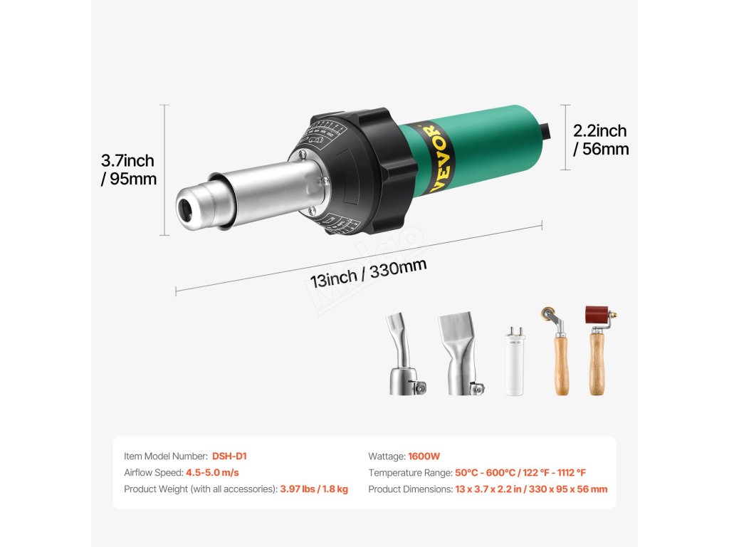 Horúcovzdušná zváračka plastov VEVOR má výkonný 1000W motor z čistej medi, ktorý zabezpečuje rýchle zahrievanie na efektívne zváranie. Obsahuje 2 dýzy, 2 valce na zváranie švov a vykurovacie jadro. Vďaka 9-stupňovej regulácii teploty, účinnému chladeniu a dlhšiemu napájaciemu káblu je ideálna pre začiatočníkov aj profesionálov.