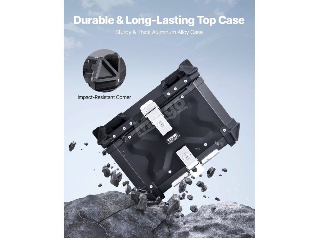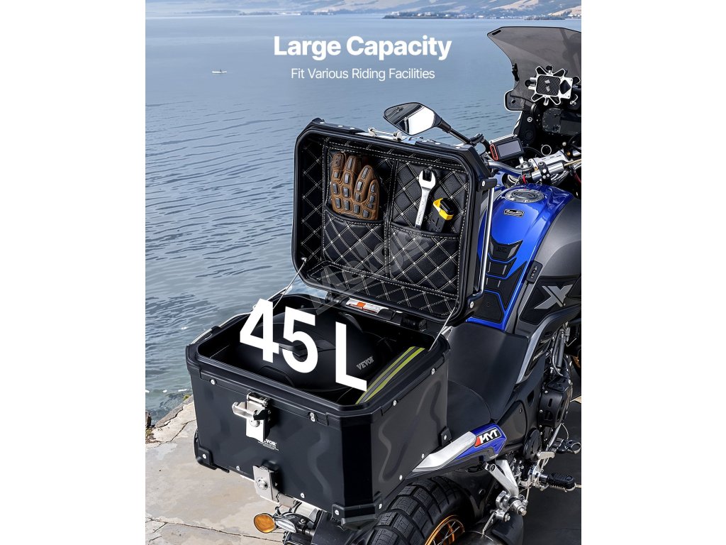 Horní kufr na motorku 45L, hliníkový, vodotěsný, se zámkem, s opěrkou
