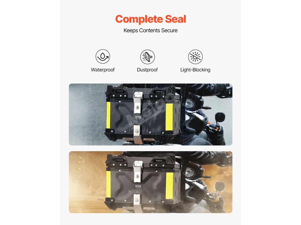Vaše věci zůstanou v kufru na motocykl v bezpečí. Uzavřená konstrukce a povrchová úprava odolná proti světlu chrání vaše věci před vlhkostí, prachem a vyblednutím a udržuje je v dobrém stavu. Už se nemusíte bát o své věci v kufru!
