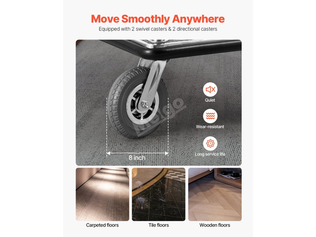 Hotelový vozík nosnost 1200 LBS, nerez, 8-inch gumová kola