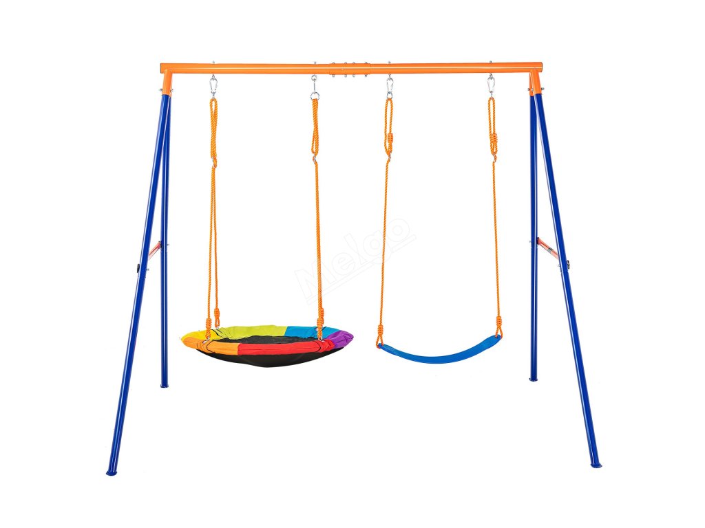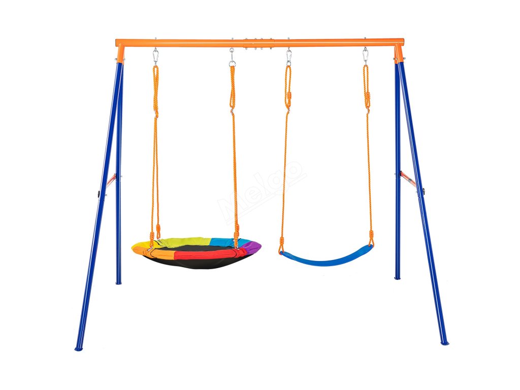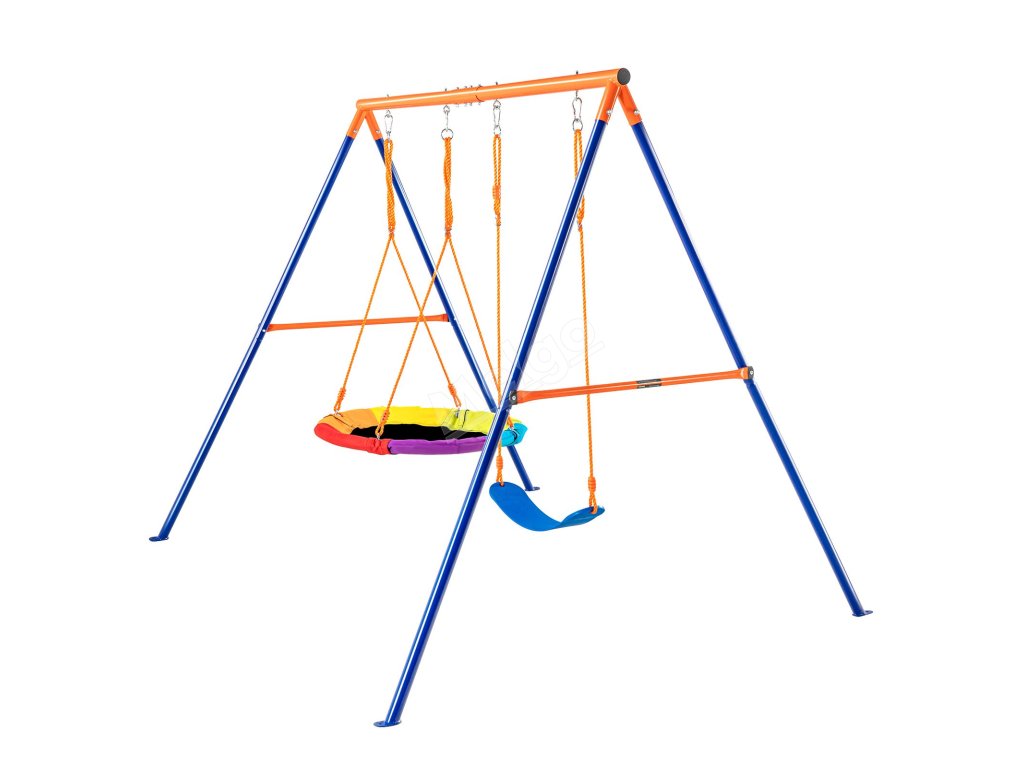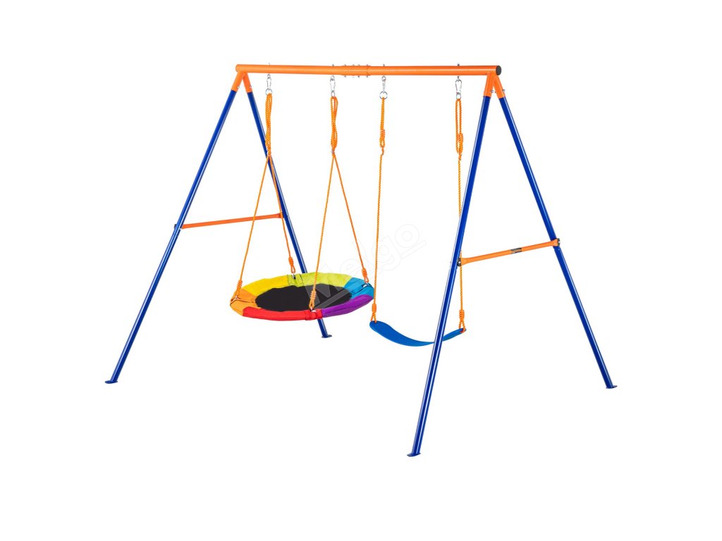 Houpačka pro děti 1 kruhové+1 páskové sedátko, a-rám, nosnost 440lbs