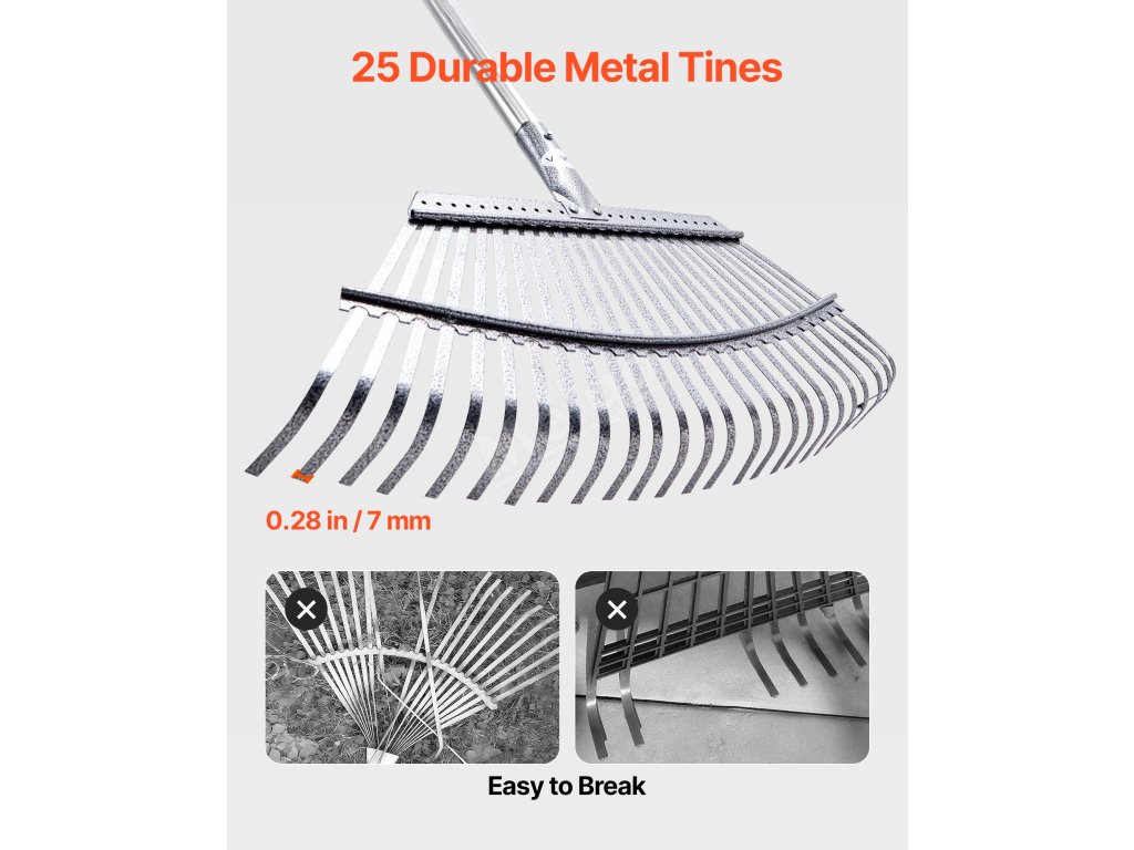 Tyto hrábě na listí jsou vyrobeny z robustních hrotů z nerezové oceli, které se nelámou, a rychle odstraňují velké hromady listí. Během okamžiku obnoví čistotu vašeho dvora, trávníku nebo terasy.