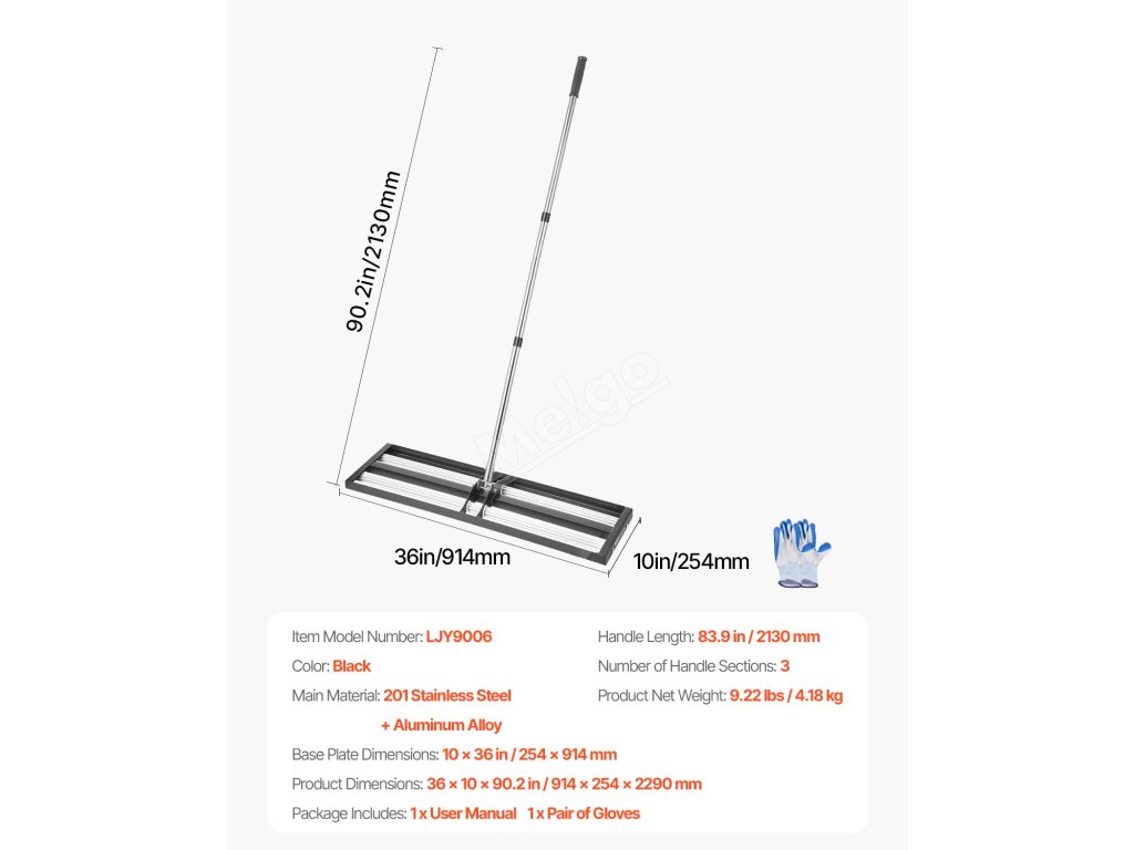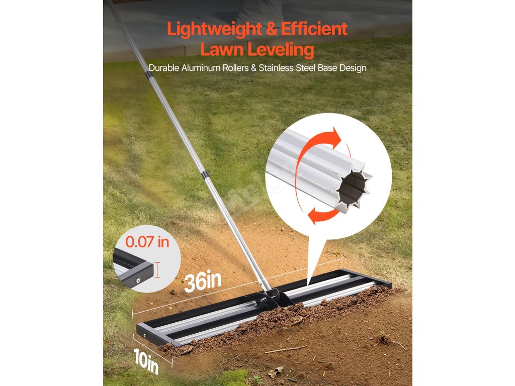 Hrábě na vyrovnávání trávníku, rukojeť 83.9 in, deska 36×10 in, kovové