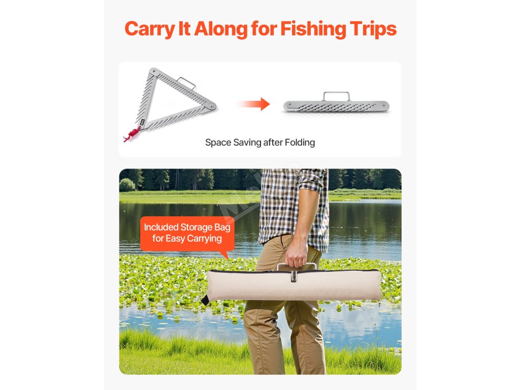 Skládací konstrukce hrábě na vodní plevel umožňuje snadné skladování, aniž by zabírala další místo. Po vyčištění hrábě jednoduše složíte a uložíte do přiložené tašky, takže je můžete snadno přenášet na rybářské výpravy. Je kdykoli připraveno vypořádat se s vodním plevelem v rybnících, jezerech nebo divokých vodách.