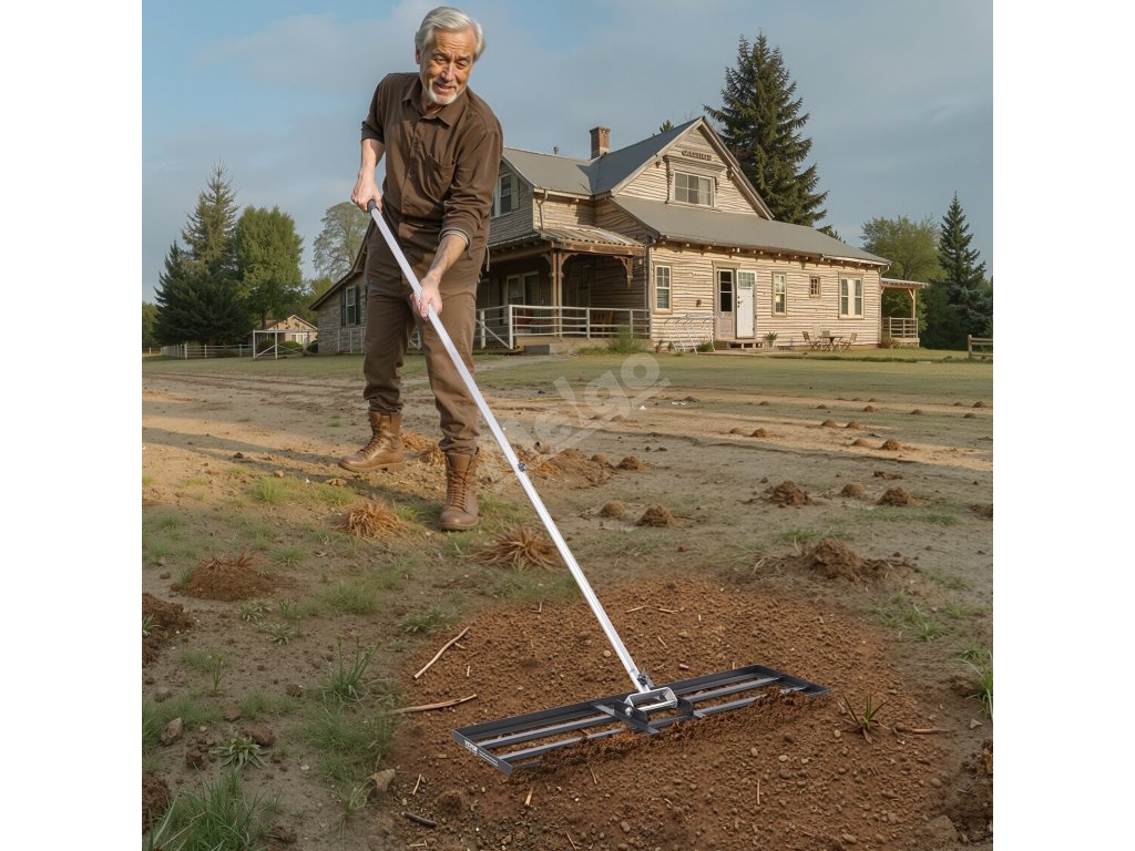 Hrable na vyrovnávání trávníku, rukojeť 83.9 in, deska 36×10in, 3 výšky