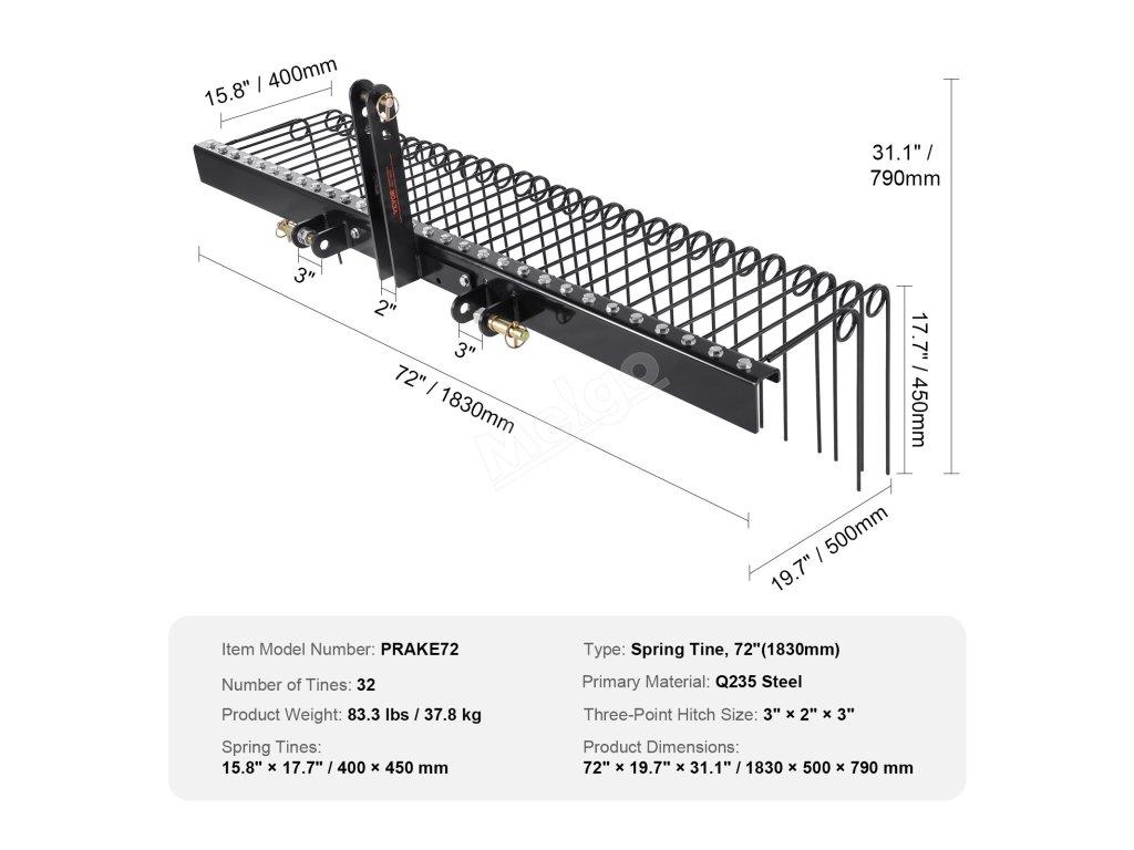 Vertikutátor s pracovním záběrem 72'' je ideální pro úklid velkých ploch, takže je ideálním nástrojem pro efektivní úklid velkých dvorů a trávníků.
