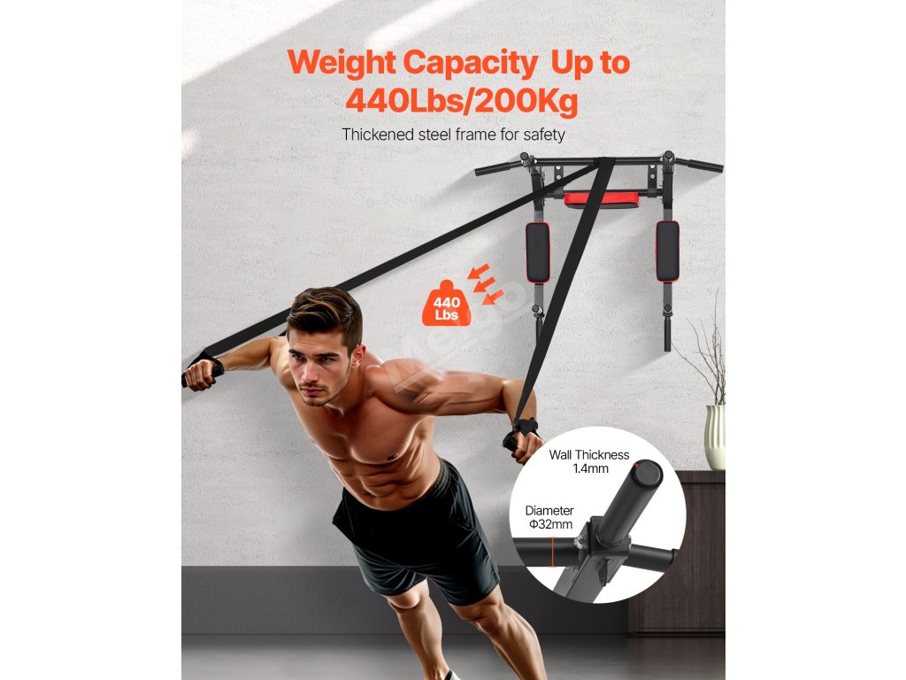 Hrazda na přítahy a dipy stěnová ocelová pevná, nosnost 440 lbs