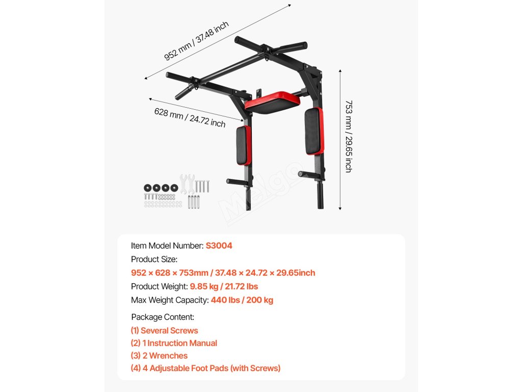 Hrazda pro přítahy horní části těla je vyrobena z odolné oceli, unese až 440 kg a zachovává si svůj výkon i při dlouhodobém používání. Má celkovou šířku 37,4 palce, 1,25palcové vroubkované rukojeti a obsahuje dva závěsné kruhy pro všestranné cvičení.