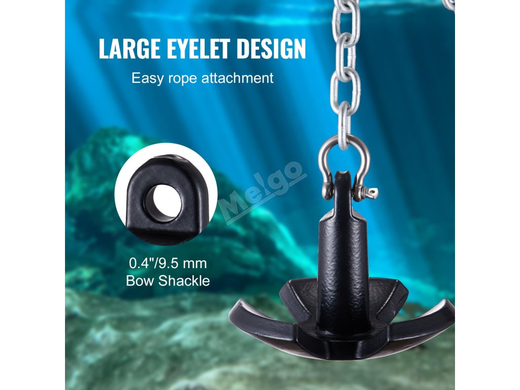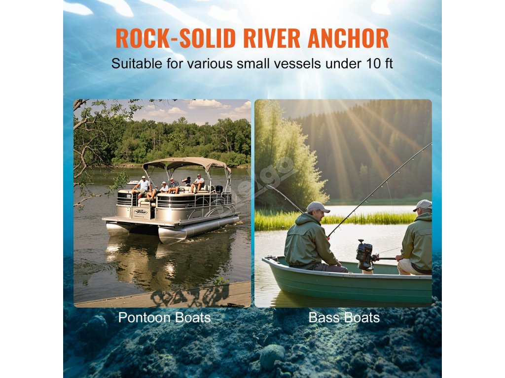 Naše odolná lodní kotva stabilizuje různé lodě včetně malých pontonových člunů, člunů pro lov okounů, lodí Jon, kánoí a kajaků o délce až 10 stop a minimalizuje riziko posunutí kotvy.