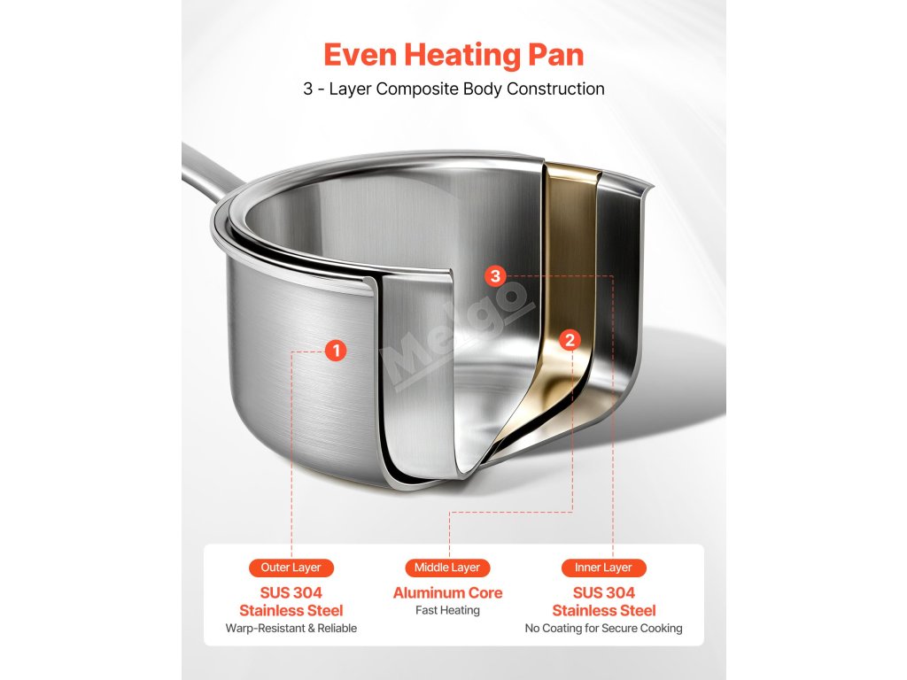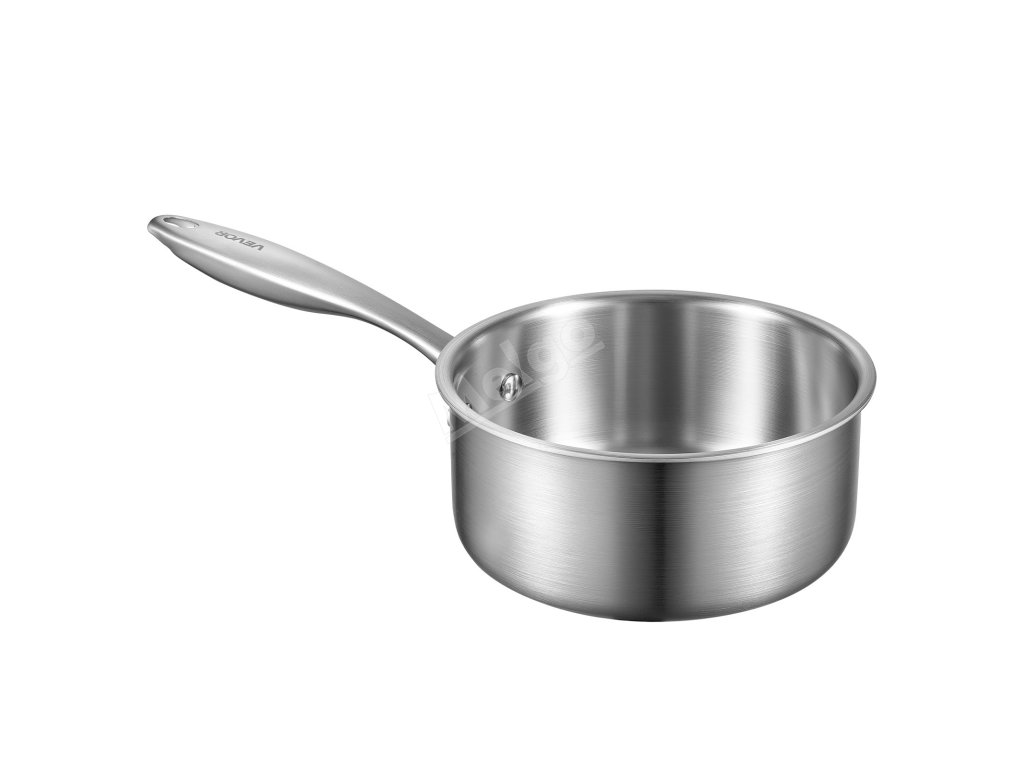 Naše pánev na omáčku z nerezové oceli je dodávána s poklicí ze zesíleného čirého skla, která umožňuje sledovat průběh vaření. Rozšířený okraj umožňuje nalévat polévku a mléko bez odkapávání. Nýtovaná jednodílná kovová rukojeť zajišťuje odolnost a zabraňuje uvolnění nebo zlomení během používání.