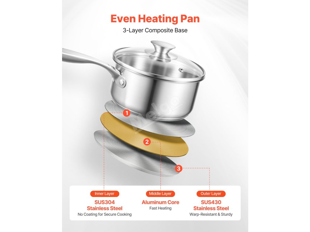 Vyrobeno z vysoce kvalitní nerezové oceli 304 bez povrchové úpravy. Bezpečná a spolehlivá - nehrozí odlupování ani loupání, takže naše pánev s poklicí je ideální pro domácí kuchaře.