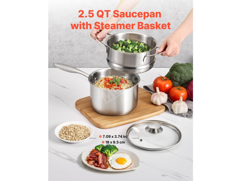 Hrnec 2.5 QT nerez s pařákem, poklicí, nepřilnavý, na indukci