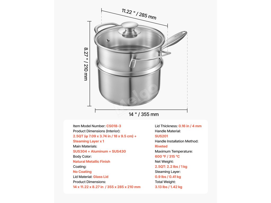 | Rozměry výrobku (vnitřní) | 2.5QT (φ 7,09 x 3,74 in / 18 x 9,5 cm) + napařovací vrstva x 1 |
