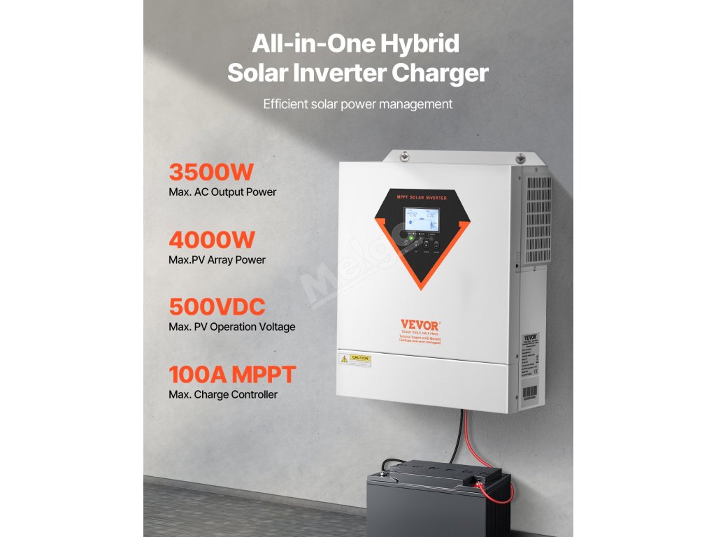 Hybridní solární měnič 3500W 24V 220/230V čistý sinus 100A mppt wifi