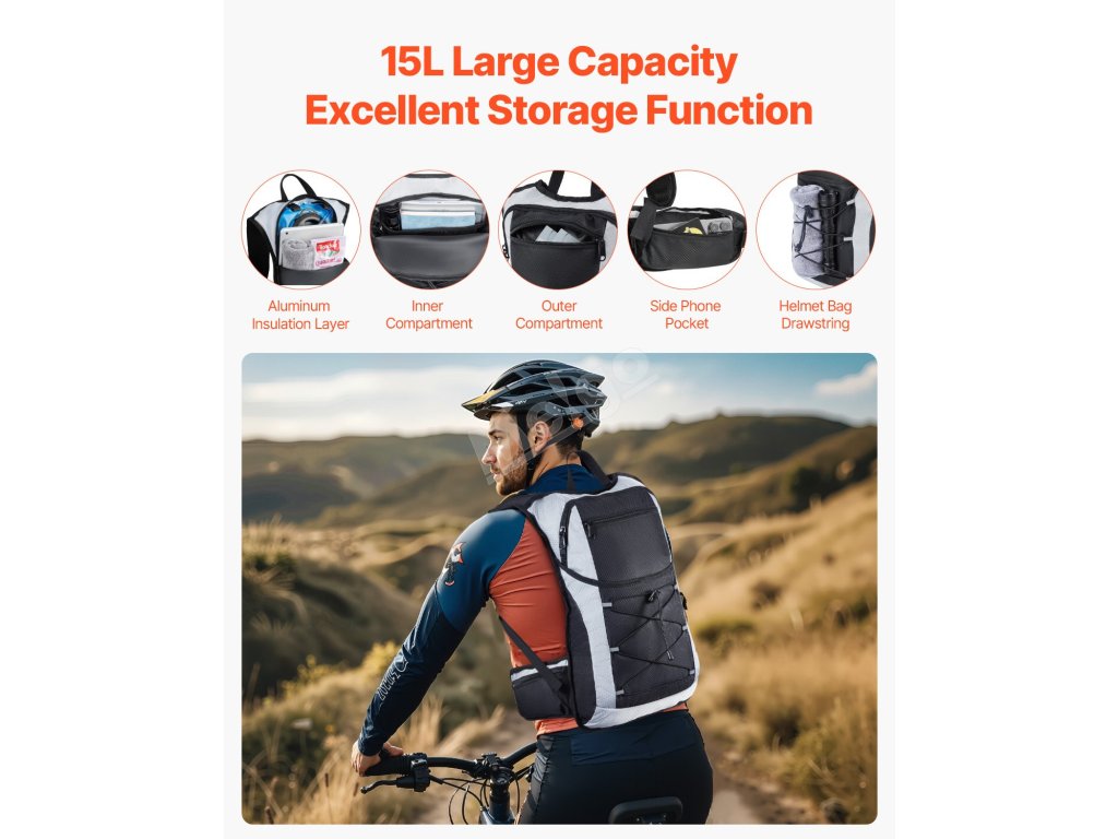 Hydratační batoh 15L izolovaný, s 3L tpu vakem a kapsou na turistiku
