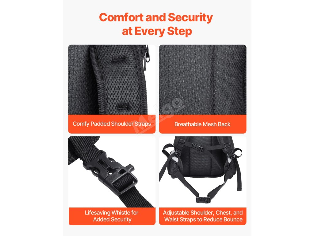 Vďaka tomuto turistickému batohu s hydratačným mechúrom je udržiavanie hydratácie jednoduché. Stačia štyri jednoduché kroky: naplňte ho, upevnite vodný mechúr a hadičku a môžete piť. Začnite svoje dobrodružstvo v prírode s ľahkosťou!