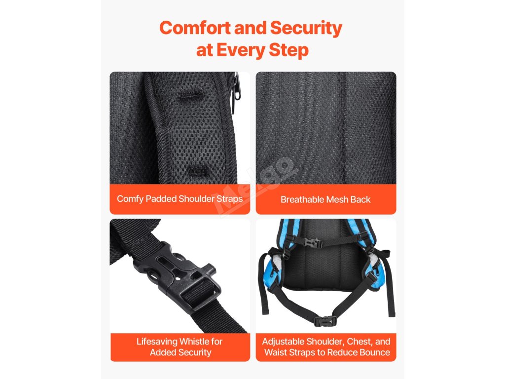 Vďaka tomuto turistickému batohu s hydratačným mechúrom je udržiavanie hydratácie jednoduché. Stačia štyri jednoduché kroky: naplňte ho, upevnite vodný mechúr a hadičku a môžete piť. Začnite svoje dobrodružstvo v prírode s ľahkosťou!