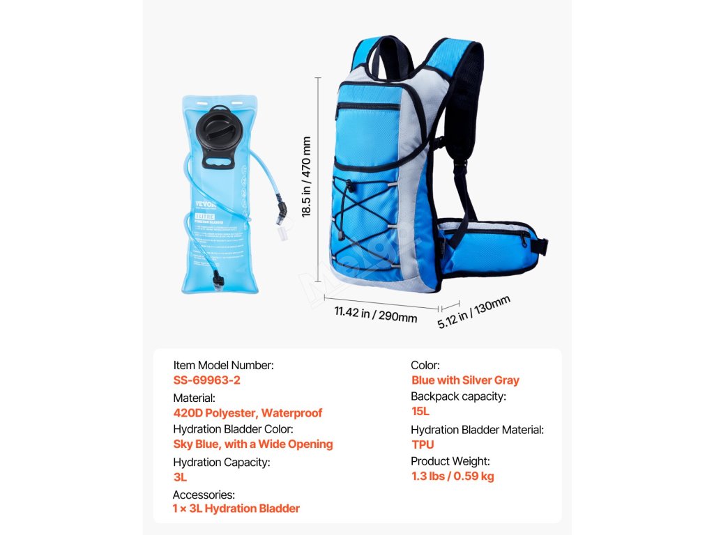 Hydratační batoh 15L s 3L vakem z tpu, izolovaný, pro turistiku