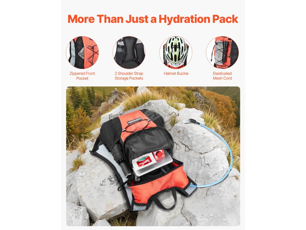 Tento hydratačný batoh kombinuje multifunkčnosť s ľahkou konštrukciou. Ľahko sa používa, je vodotesný a odolný. Jeho výkonná úložná kapacita vám umožní bez obáv objavovať prírodu. Doplňte si hydratáciu kedykoľvek a kdekoľvek. Zostaňte plní energie počas svojich dobrodružstiev.