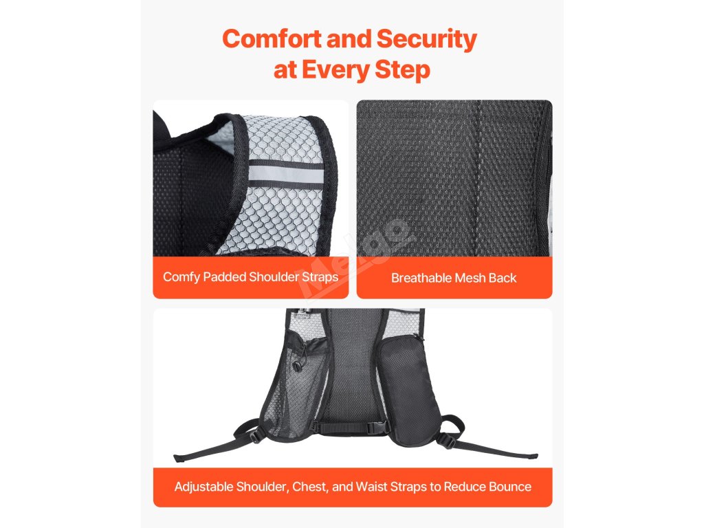 Bežecký batoh sa dodáva so štvorvrstvovou konštrukciou odolnou proti úniku vody. Obsahuje automatický uzatvárací/vypínací ventil, vylepšený gumový krúžok a zabezpečovacie popruhy. Náš hydratačný batoh prechádza 100 % testovaním vzduchotesnosti, čo zaručuje, že nedôjde k úniku ani počas intenzívnych aktivít.