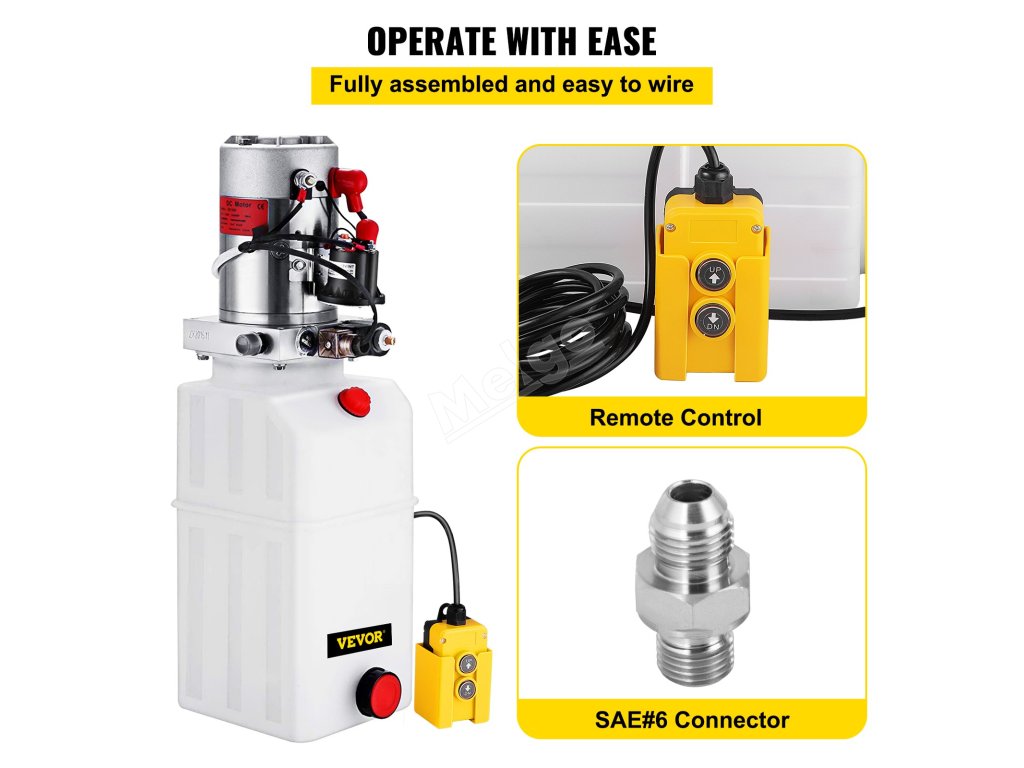 Naše hydraulické elektrické čerpadlo je kompletně sestaveno. Dodává se s ručním dálkovým ovládáním a 1 dalším konektorem SAE#6 pro výměnu. Celá pohonná jednotka se snadno zapojuje a snadno ovládá.
