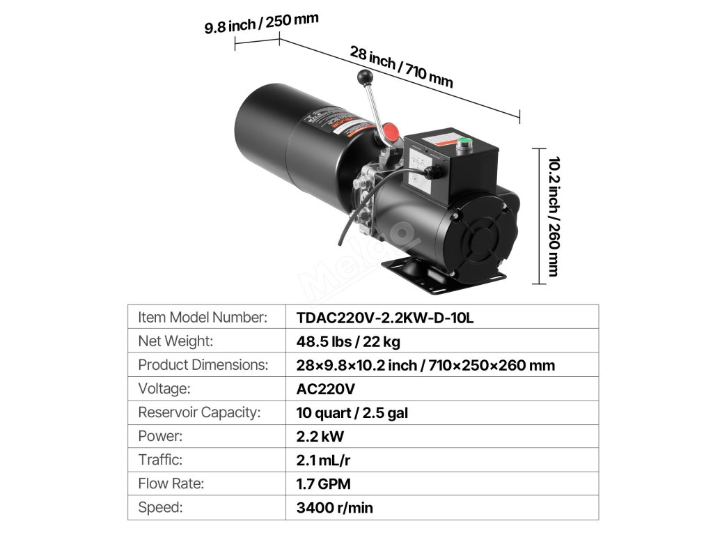Hydraulická jednotka AC 220V, 10 quart, jednočinná, 6.3 L/min, 22 MPa