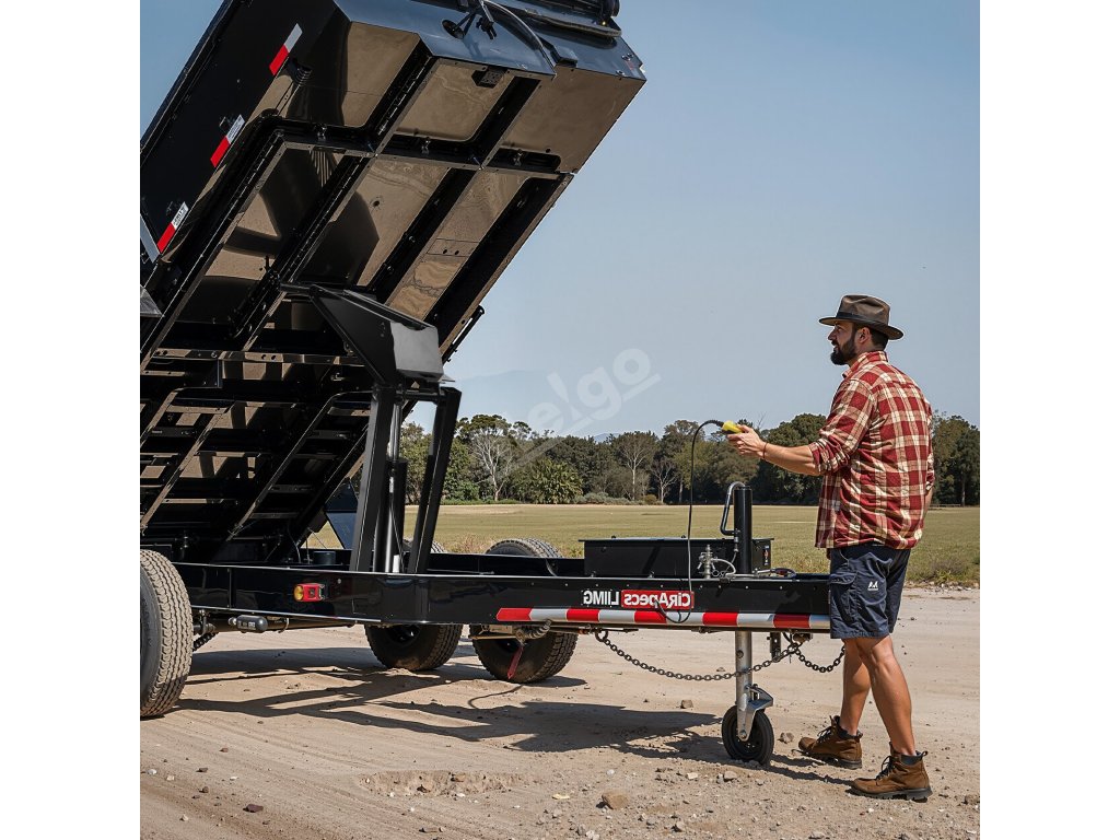 Tato sada sklápěcího lůžka instalovaná v zadní části sklápěcího přívěsu umožňuje snadnou manipulaci s různými materiály, jako je stavební suť, zemina, štěrk a mulč. Díky této všestrannosti je cenným přínosem při přepravě zařízení a materiálů ve stavebních projektech a projektech terénních úprav.