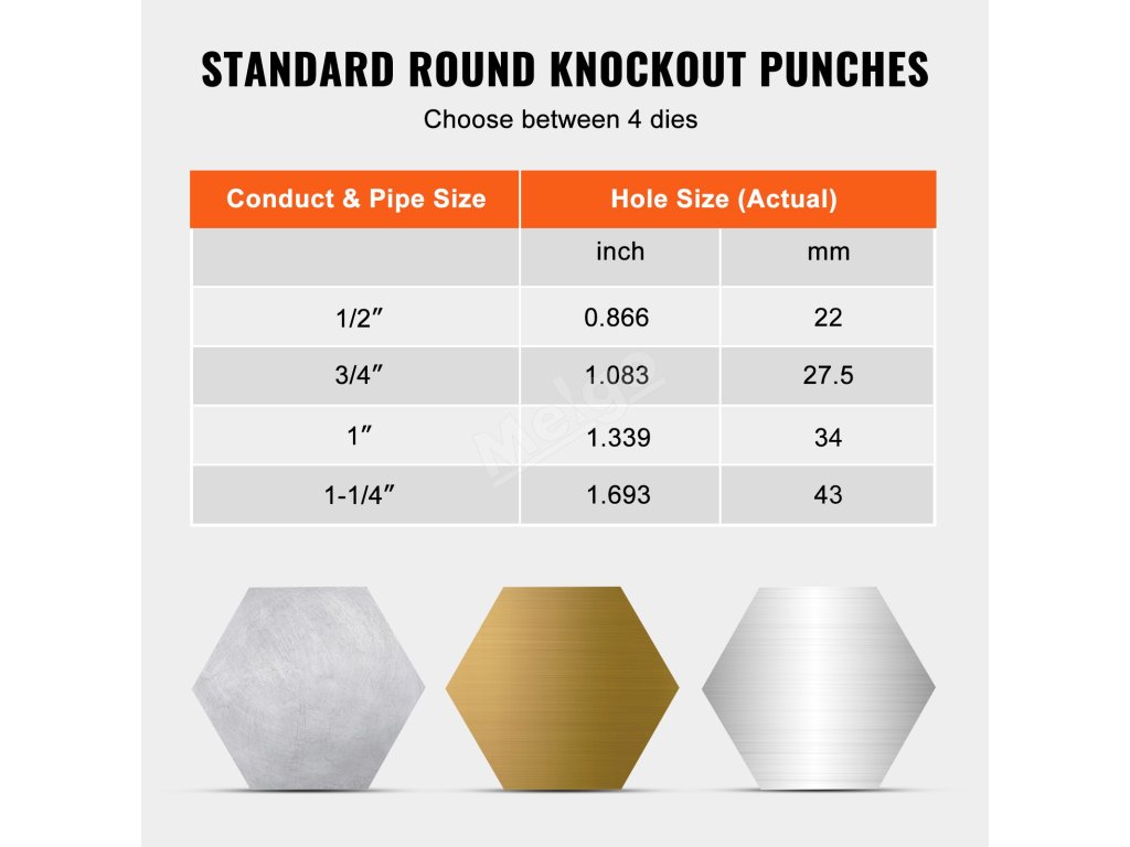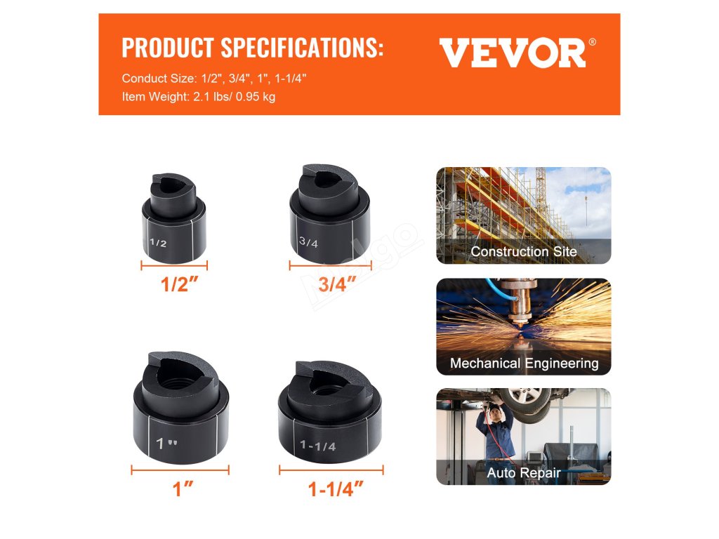 Hydraulický vyraďovací nástroj VEVOR je najlepším nástrojom pre presnú prácu. Vždy vytvára čisté a okrúhle otvory. Táto sada vyraďovacích nástrojov obsahuje 4 matrice pre rôzne veľkosti, ktoré pasujú na potrubia s priemerom 1/2", 3/4", 1" a 1-1/4", čo vám umožňuje efektívne pracovať na rôznych projektoch. Ich konštrukcia zaisťuje ľahké a rýchle odstraňovanie výliskov. Je to teda nevyhnutný nástroj aj pri profesionálnych/kutilských projektoch. Nech už pracujete na stavbách alebo pri inštalácii elektroniky, tento nástroj vám poskytne spoľahlivý výkon. Vďaka svojej presnosti a efektívnosti je tento nástroj cenným doplnkom každej sady náradia.
