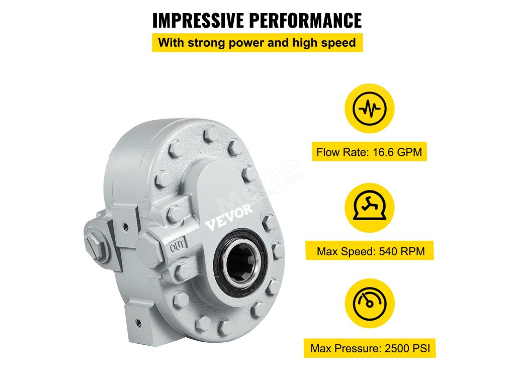 Toto čerpadlo s průtokem 16,6 GPM a rychlostí otáčení 540 otáček za minutu je schopno dodávat vašemu zařízení silný výkon. Díky našemu výkonnému čerpadlu bude vaše práce mnohem snazší.