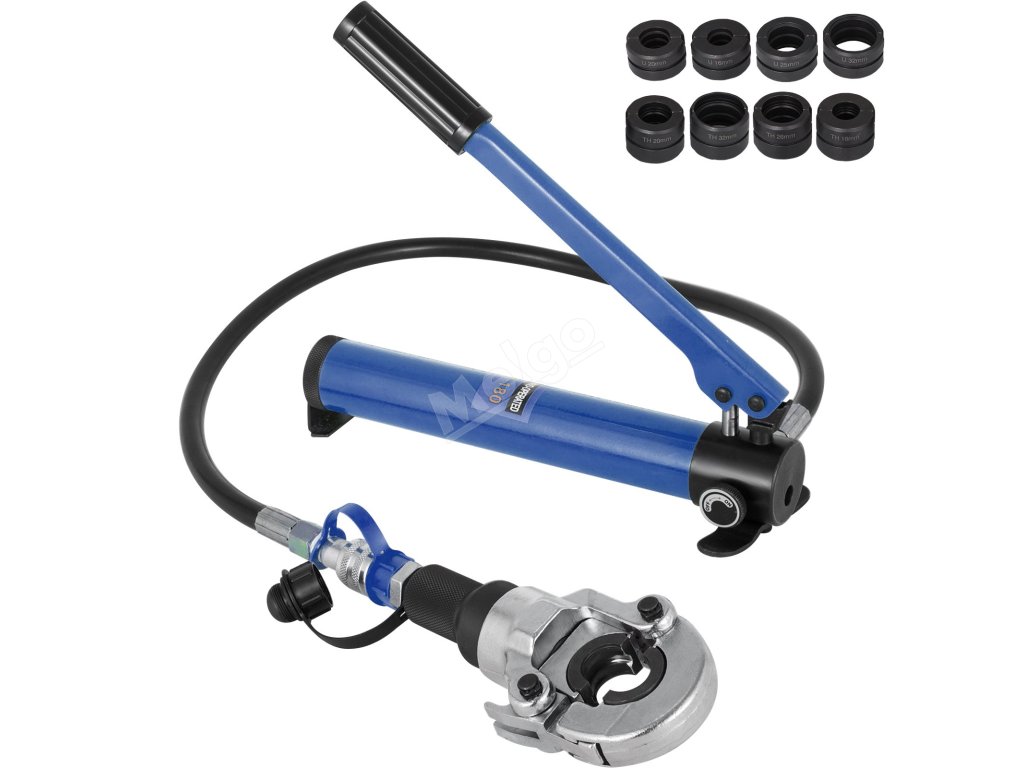 Odolné a silné hydraulické krimpovací kleště s oboustranným ovládáním, krimpování během několika sekund, účinné pro šroubení. Je vybavena několika krimpovacími nástroji typu TH/U pro různé trubky .