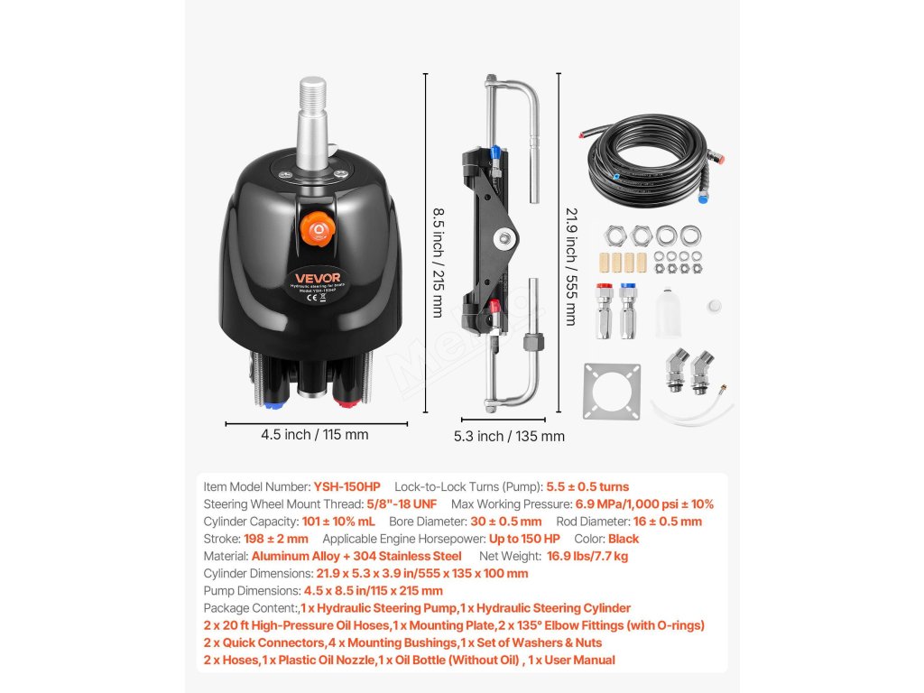 Hydraulické řízení lodi 150 hp, 6.9 mpa/1000 psi, hadice 7.92 m