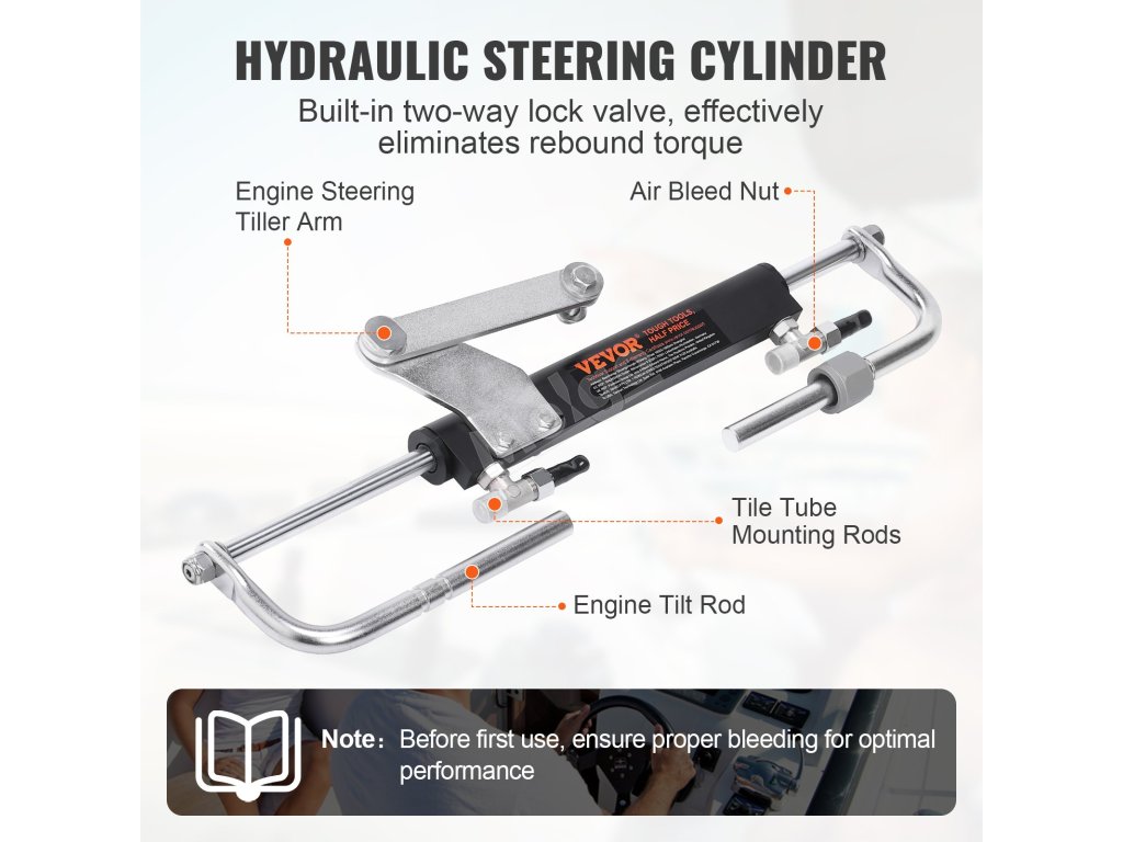Naše sada umožňuje instalaci hydraulického systému řízení na motory o výkonu do 90HP. Hřídel řízení má plášť z hliníkové slitiny, který odolává drsnému prostředí na moři. Hydraulický válec řízení obsahuje dvoucestný uzavírací ventil, který vám přináší vynikající lodní kvalitu.