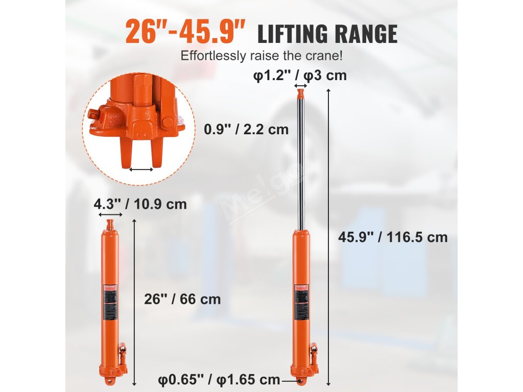 Náš hydraulický zvedák s dlouhým ramenem zvládne bez námahy zatížení až 8 tun, takže je ideální pro jeřáby v různých aplikacích včetně profesionálních strojů, údržby a domácího použití. Zvedák promění váš stávající jeřáb v pohodlné, efektivní a bezpečné řešení pro zvedání.