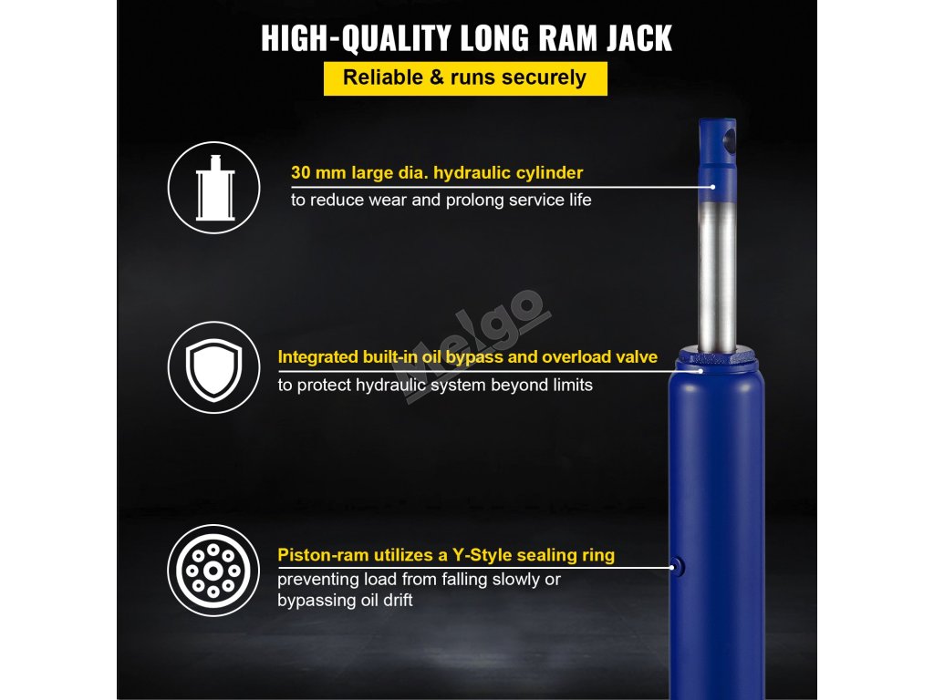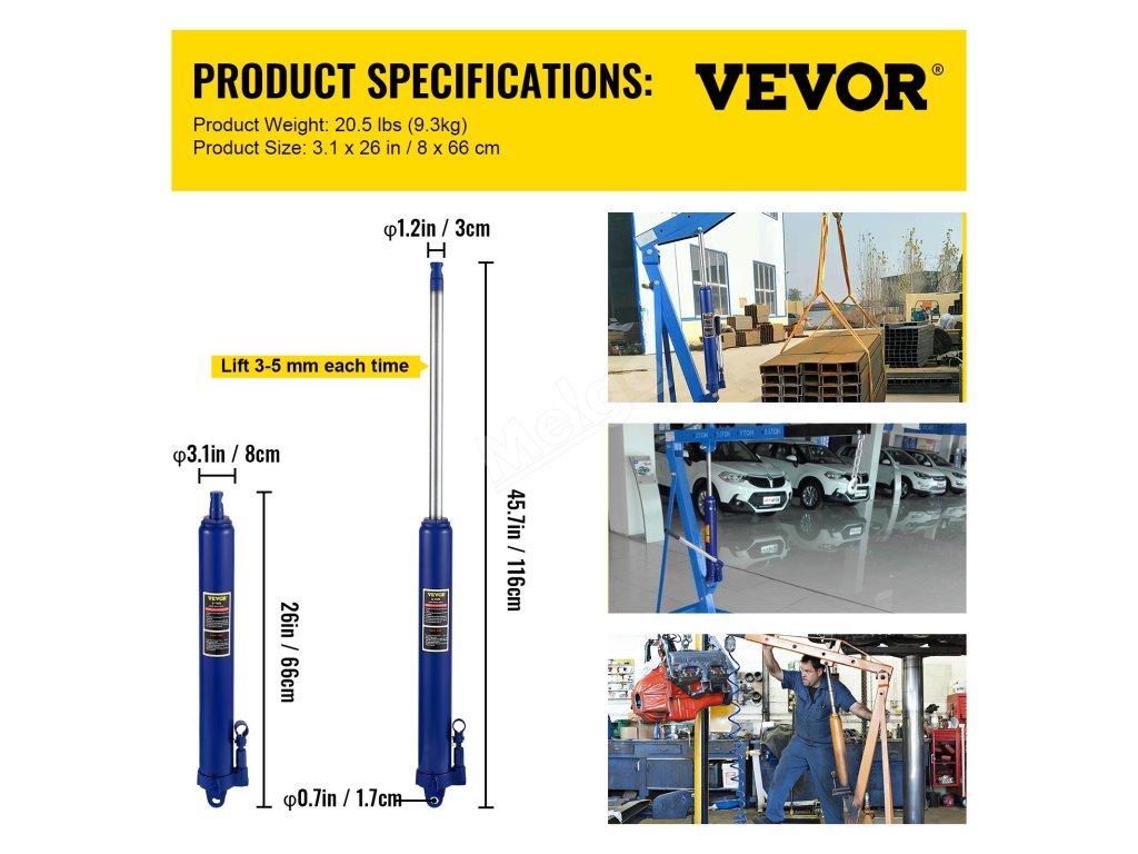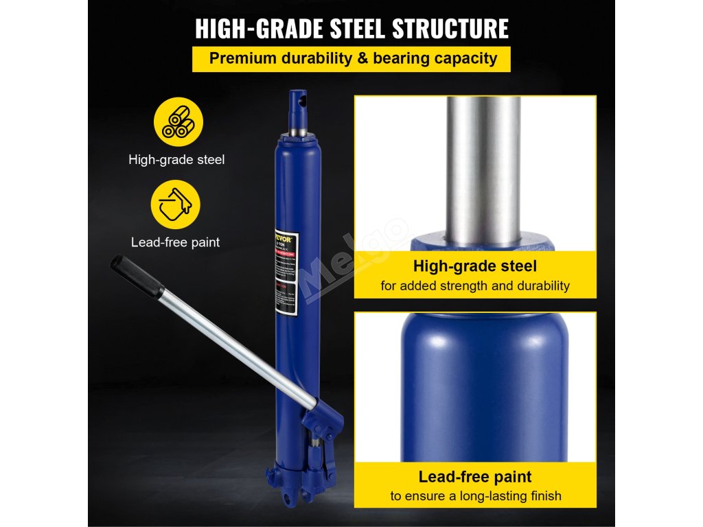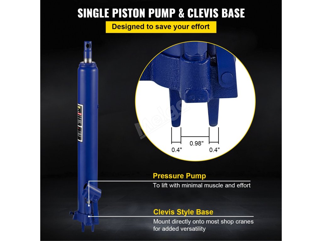 Náš hydraulický zvedák s dlouhým ramenem je určen pro domácí i komerční použití, pro instalaci garážových/dílenských jeřábů, motorových zvedáků a dalších zařízení.