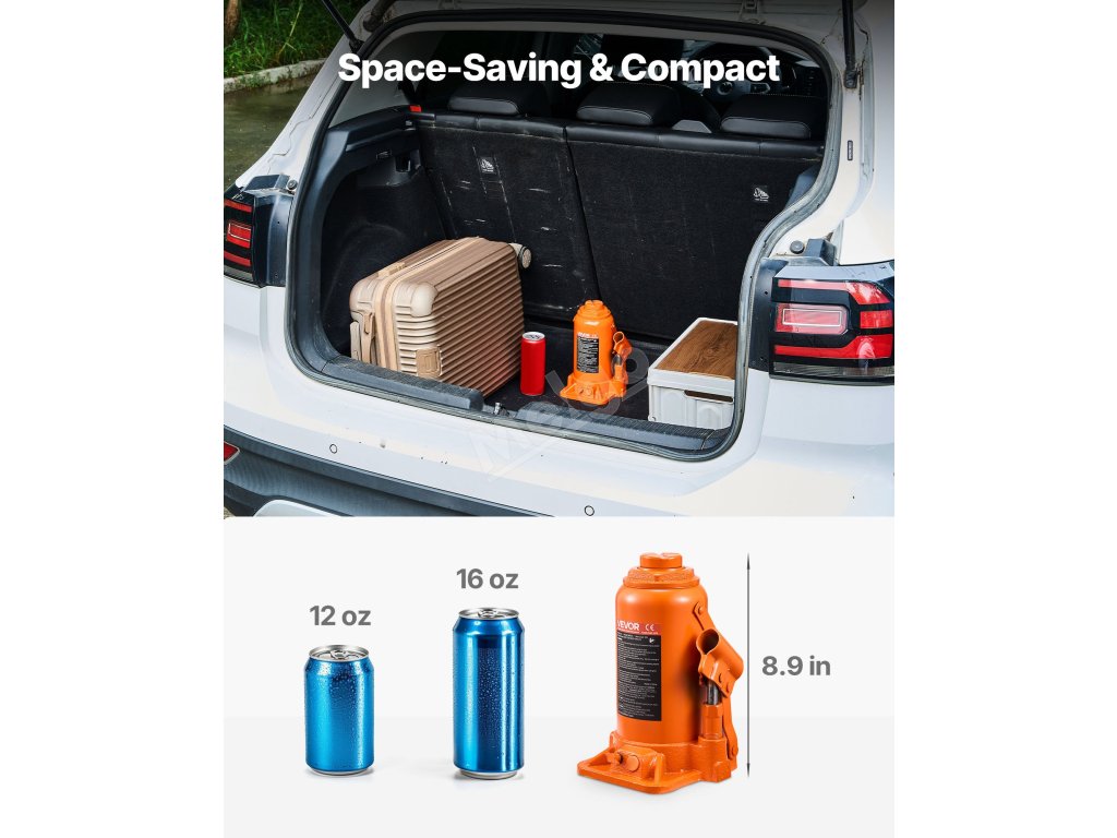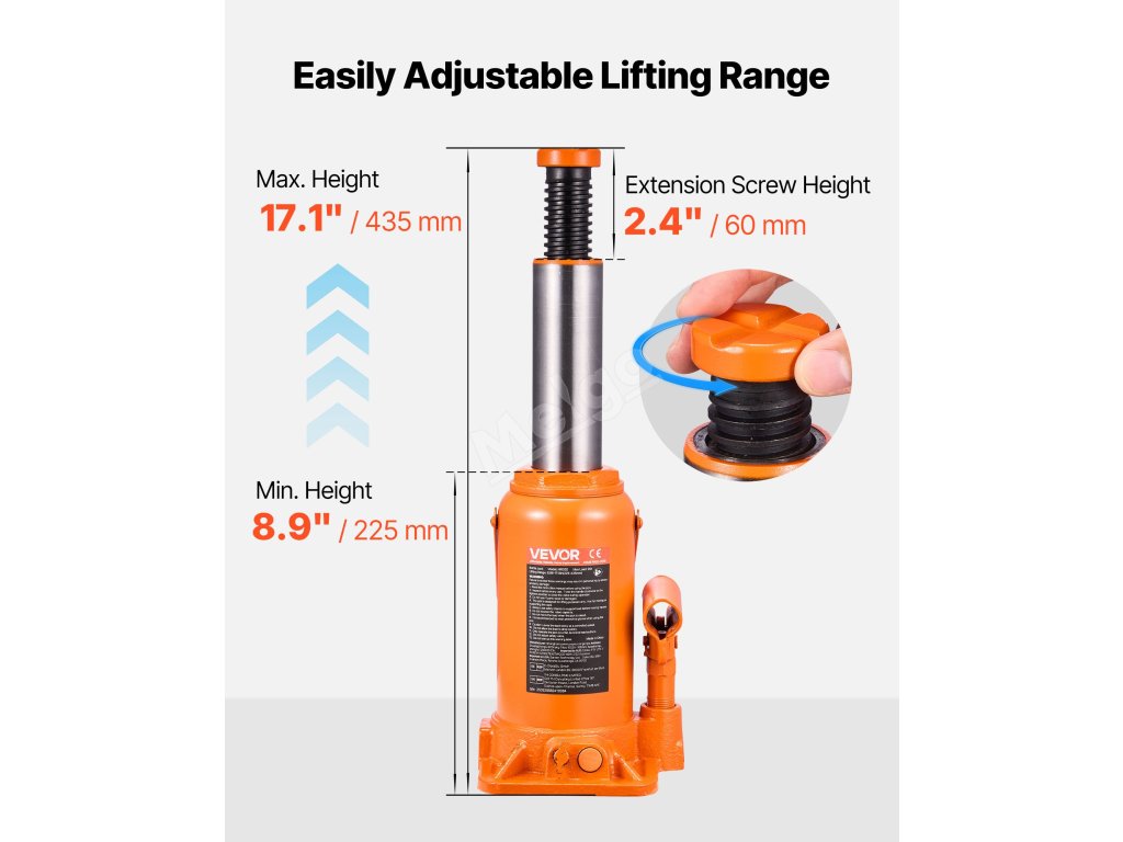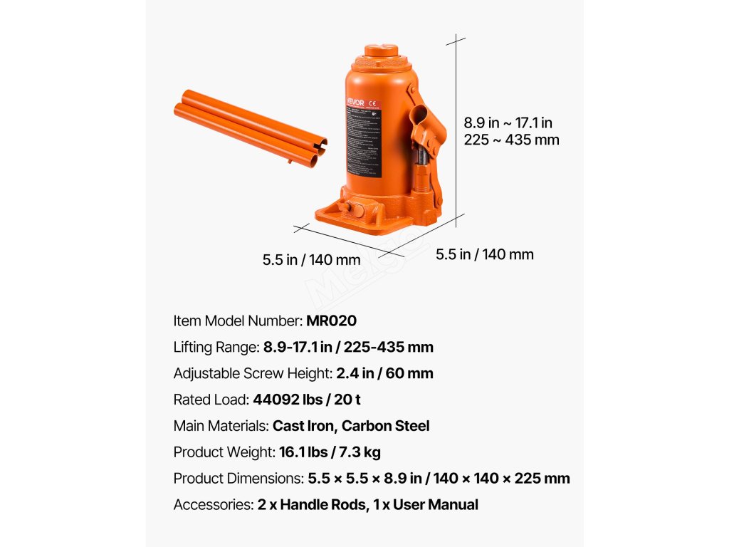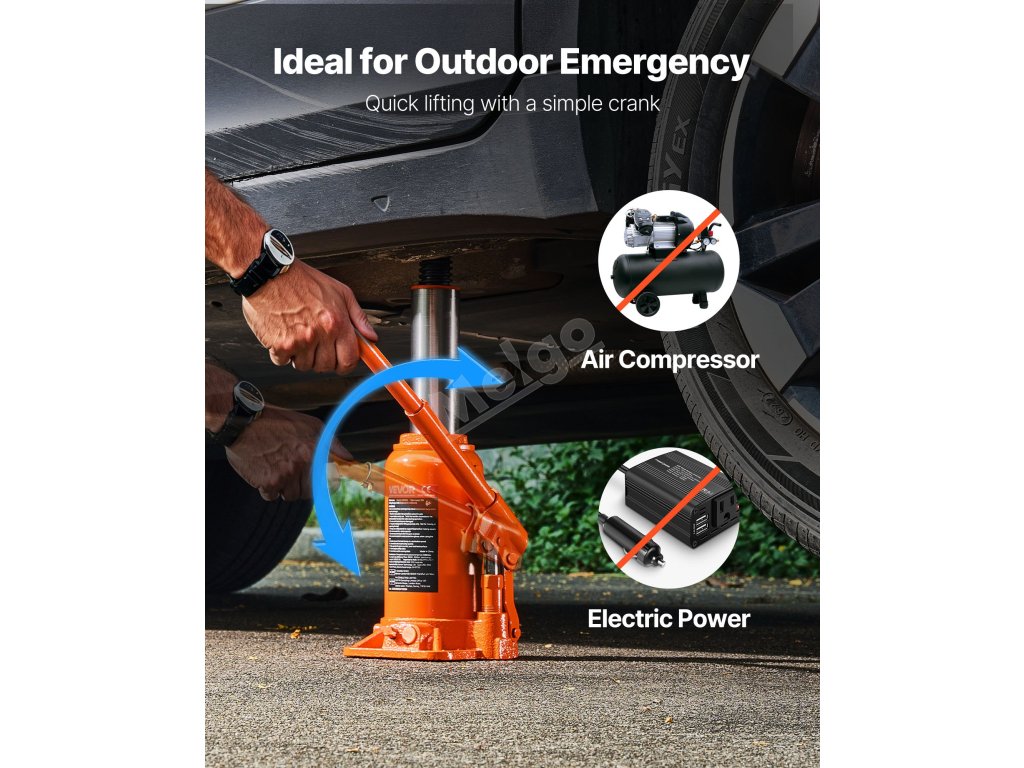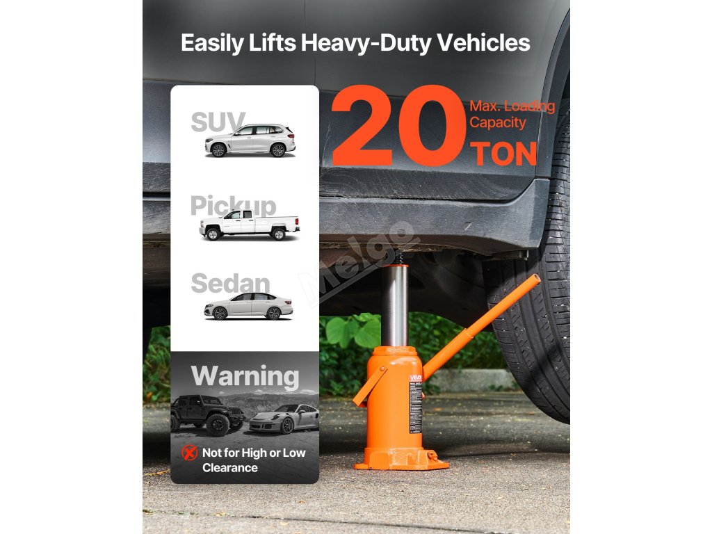 Tento hydraulický zvedák na láhve zvedá pomocí ručního čerpání stabilní silou až 20 tun (44 092 liber) - není potřeba elektřina ani vzduch. Je to spolehlivá volba pro těžké práce kolem domu, garáže nebo příjezdové cesty.