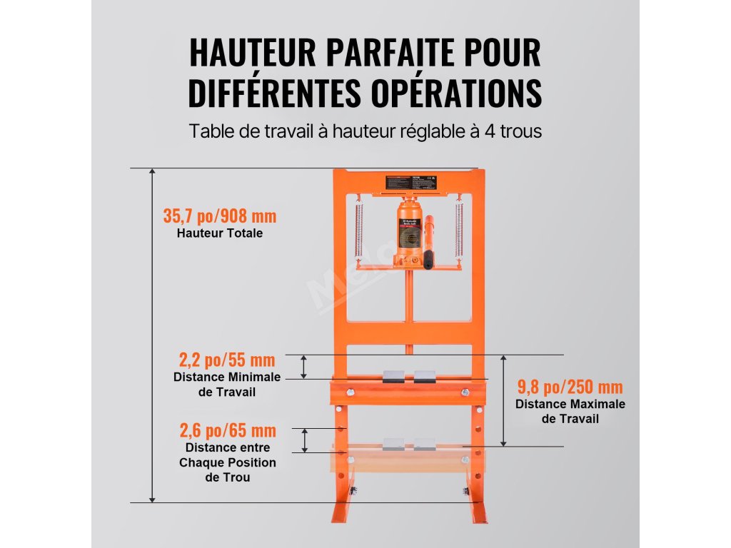 Ide o všestranné náradie na viacero aplikácií. Výškový rozsah môžete nastaviť od 2,2 do 9,8 palca. To vám umožní pracovať na rôznych dieloch a súčiastkach. Lis je ideálny na lisovanie ložísk, U-kusov a ďalších. Jeho nastaviteľná výška zaručuje, že môžete pracovať s rôznymi veľkosťami dielov. Táto flexibilita z neho robí neuveriteľne užitočný nástroj v každej dielni. Možno ho použiť na mnoho úloh. Náš lis má jednoduché nastavenie. Výšku môžete zmeniť rýchlo a jednoducho, čím ušetríte čas a námahu. Vďaka svojej všestrannosti je to nevyhnutný nástroj.