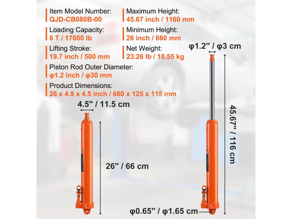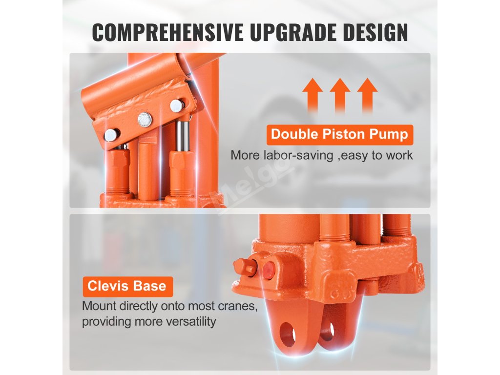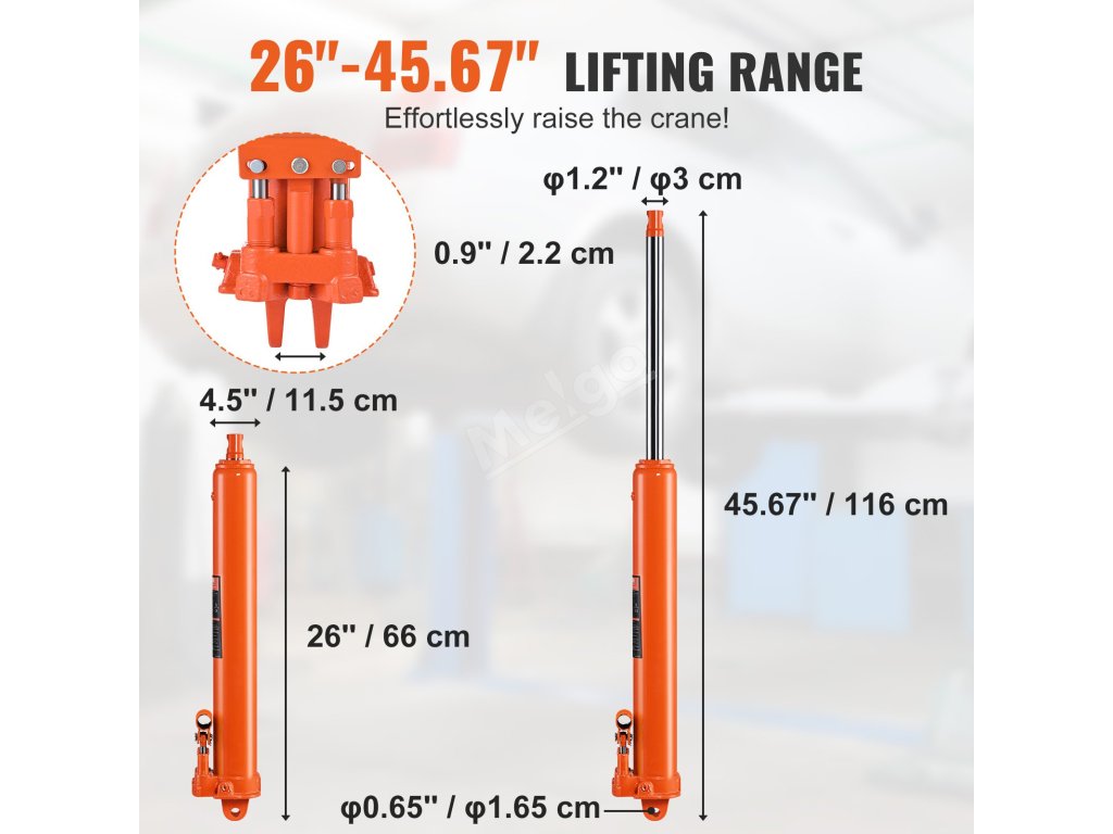 Náš hydraulický zvedák s dlouhým ramenem zvládne bez námahy zatížení až 8 tun, takže je ideální pro jeřáby v různých aplikacích včetně profesionálních strojů, údržby a domácího použití. Zvedák promění váš stávající jeřáb v pohodlné, efektivní a bezpečné řešení pro zvedání.