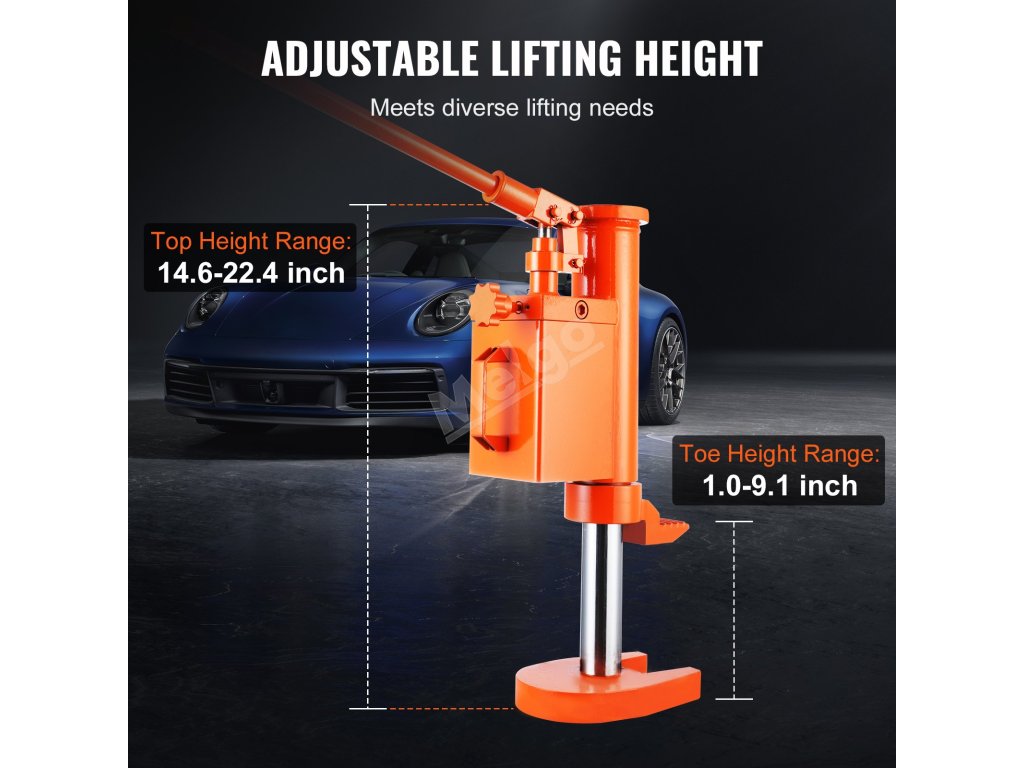 Hydraulický prstový zvedák 5t/10t, 1.0–9.1in, 14.6–22.4in, 360°otočný