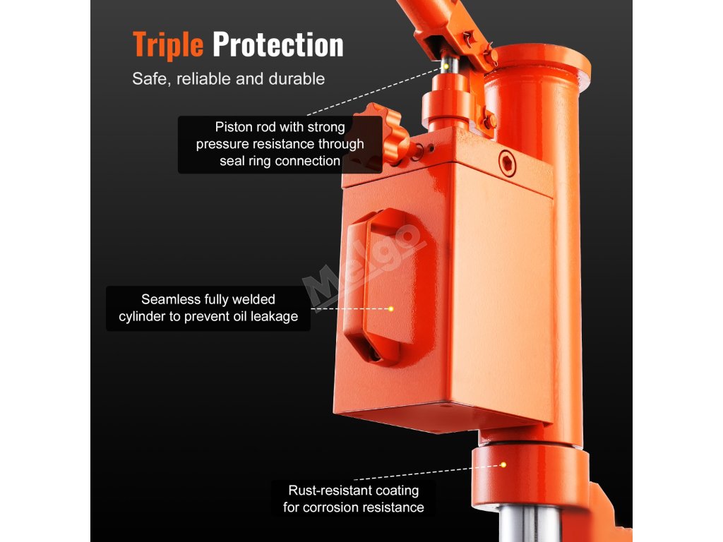 Kvalitní komponenty zajišťují stabilní zvedání. Silné a pružné tlačné pružiny zajišťují stabilitu a spolehlivý odraz. Zvětšená horní plocha bez námahy zvládne manipulaci s velkým zařízením, zatímco jednodílná konstrukce drápu zajišťuje stabilní nosnost.