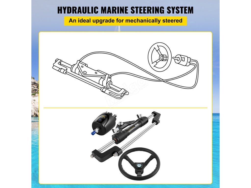 Sada hydraulického závěsného řízení je vhodná pro většinu závěsných motorů s válcem, kormidlem a sadou příslušenství.