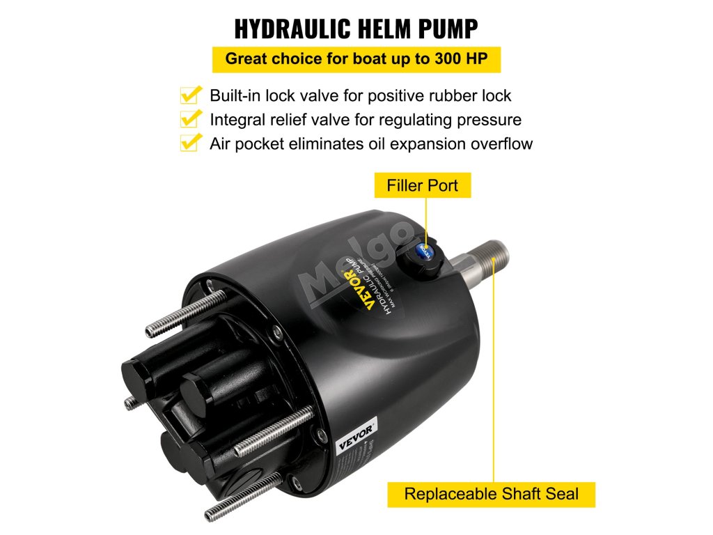 Kormidlo s max. Pracovní tlak je 6,9 Mpa/1000psi. Dodává se s vyměnitelným těsněním hřídele, které chrání kapalinu před únikem. Dodává se příslušenství ORB pro snadné vedení hadic a rychlou instalaci.