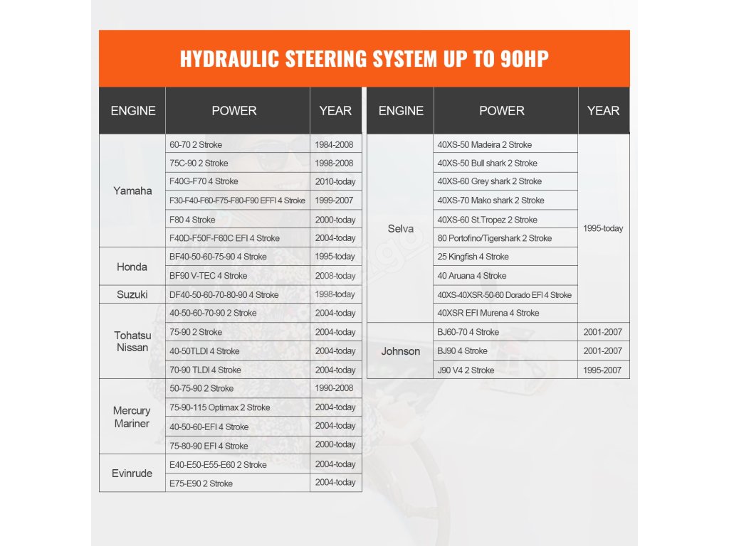 Naše sada umožňuje instalaci hydraulického systému řízení na motory o výkonu do 90HP. Hřídel řízení má plášť z hliníkové slitiny, který odolává drsnému prostředí na moři. Hydraulický válec řízení obsahuje dvoucestný uzavírací ventil, který vám přináší vynikající lodní kvalitu.