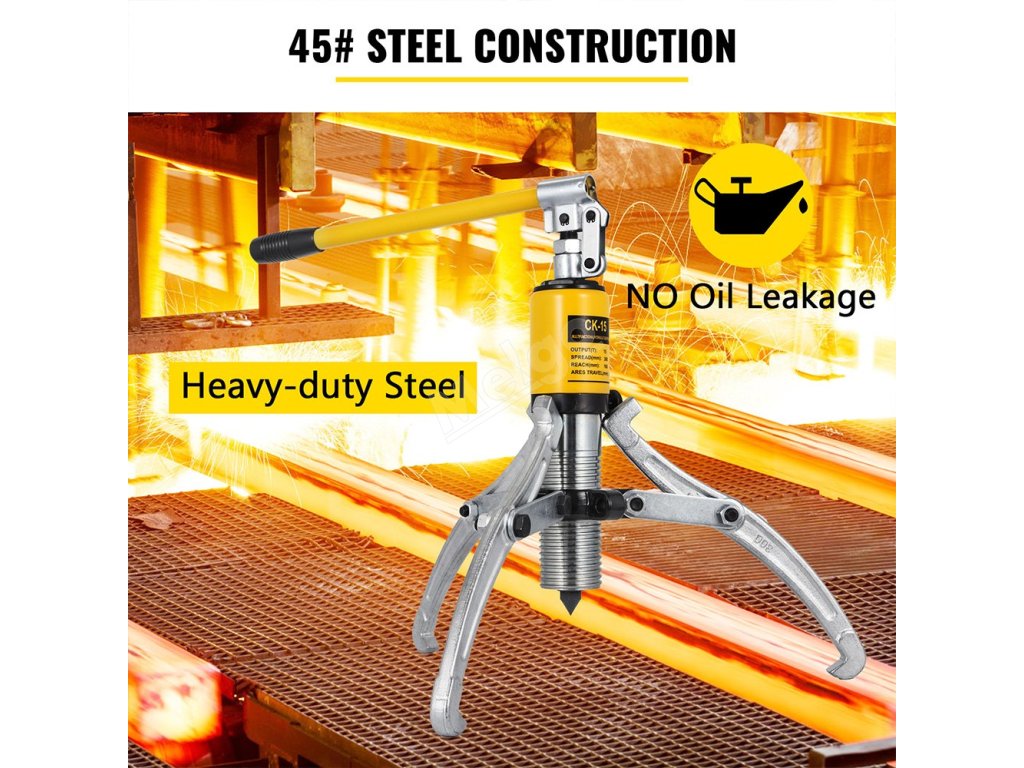 Hydraulický stahovák používá vysoce kvalitní ocel 45# s nosností 15 tun, která zajišťuje vysokou tvrdost a vynikající výkon.