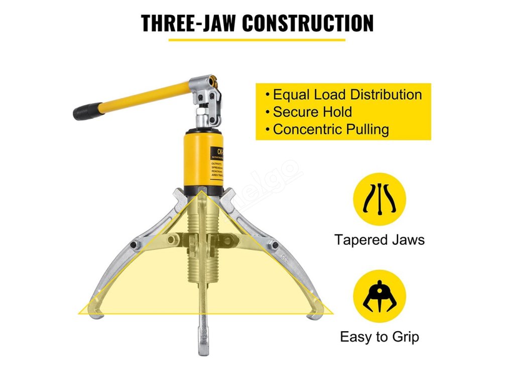 Stahovák ozubených kol s vertikálním a horizontálním provozem je navržen tak, aby splňoval různé požadavky s dosahem 0-7" (0-180 mm) a rozpětím 4"-12" (100-300 mm).