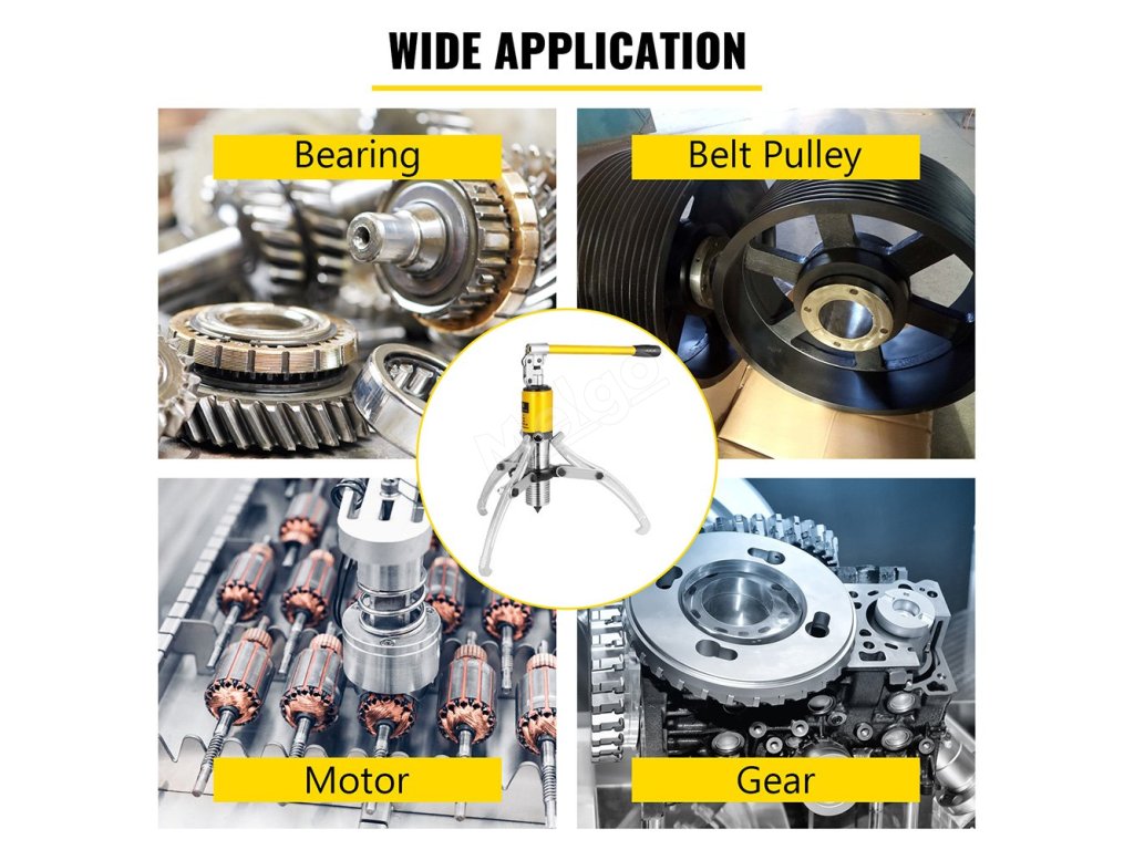 Tento odstraňovač řemenic lze použít na všech strojích s ložisky, řemenicemi, motory, převodovkami atd. Přístroj je ideální pro práci na automobilech v garáži nebo v automobilových opravnách.