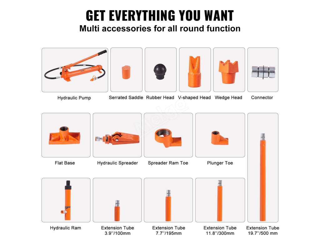 Súprava VEVOR 10 ton porta power obsahuje viacero predlžovacích tyčí. Tieto veľkosti sa pohybujú od 3,9 palca do 19,7 palca. To umožňuje presné nastavenie. Je ideálna na opravu ohnutých rámov automobilov. Tyče dobre priliehajú a poskytujú stabilnú oporu. To zaručuje presné opravy bez spôsobenia ďalšieho poškodenia. Rôzne úlohy spojené s opravou rámu zvládnete s minimálnym úsilím. Náradie sa jednoducho používa a nevyžaduje si veľké úsilie. Preto je univerzálnym doplnkom každej garáže. Náš výrobok ponúka presné a spoľahlivé opravy. Výrazne vám uľahčíme proces opravy rámu. To je jeden z najdôležitejších nástrojov pre automobilové garáže!